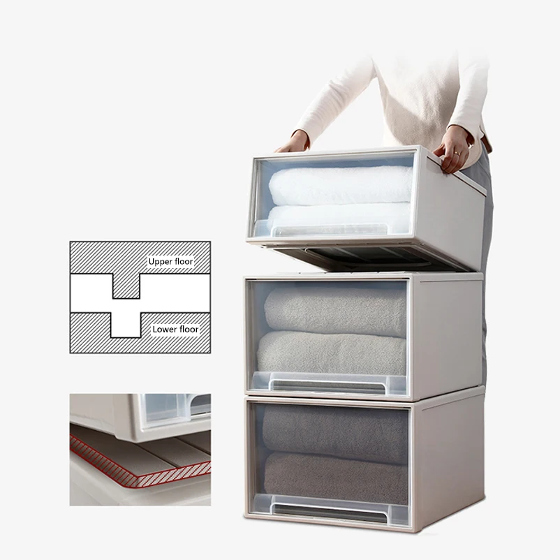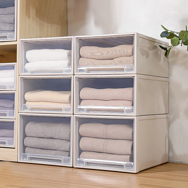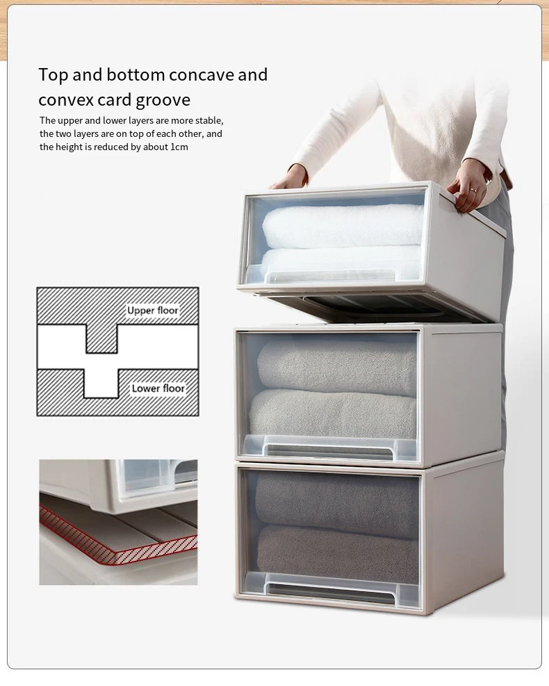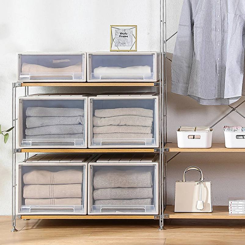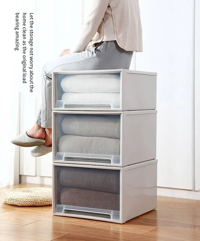 Lid Office Living Room Clothes Plastic Thickened Transparent Bins Cabinet Stackable Storage Box PP Drawer Boxes Case