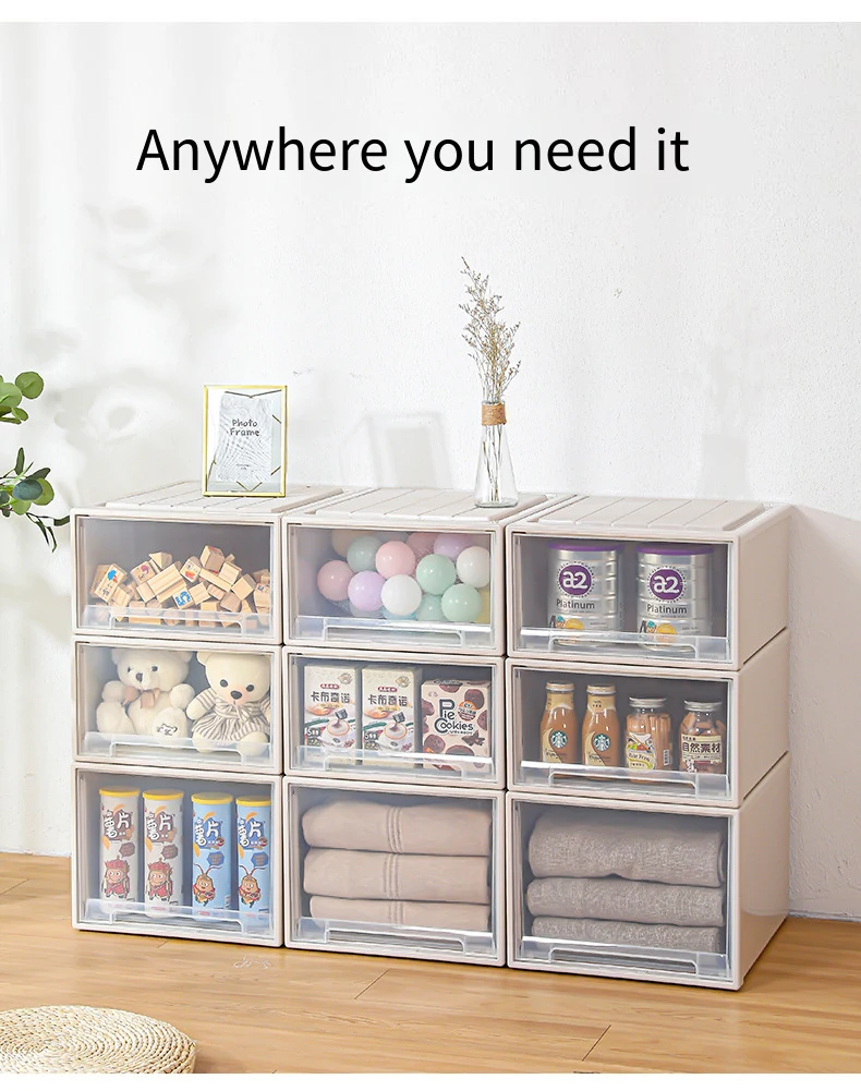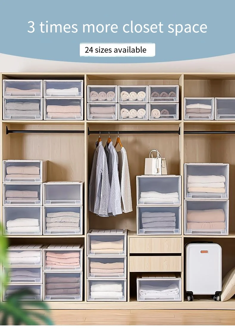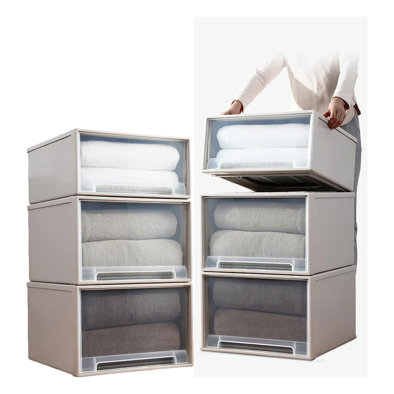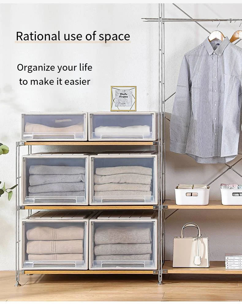 Lid Office Living Room Clothes Plastic Thickened Transparent Bins Cabinet Stackable Storage Box PP Drawer Boxes Case