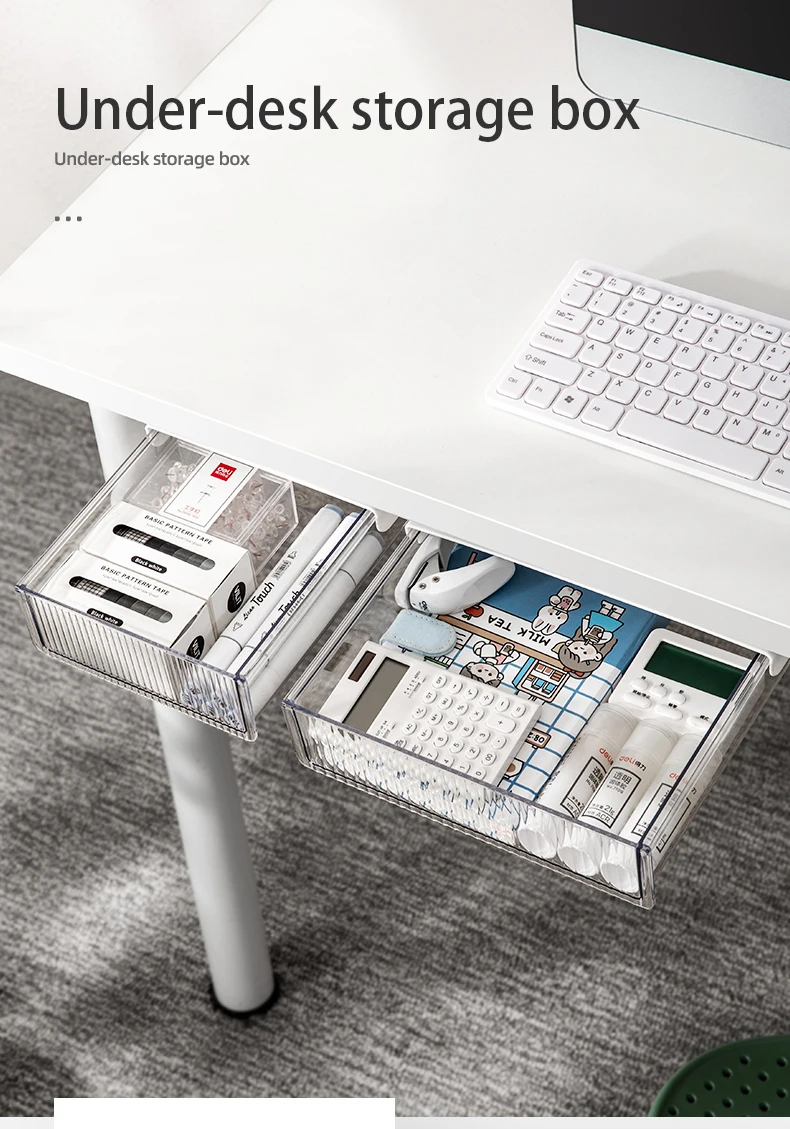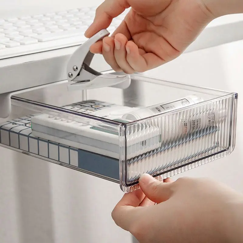 Custom Self Adhesive Under Desk Drawer Under Desk Drawer Storage Organizer Transparent In Office