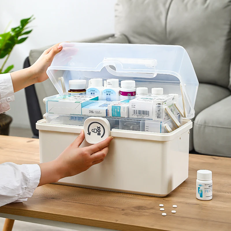 Special Offer First Aid Plastic Travel Baby Medicine Cabinet Storage Box Custom Double Layer Pink