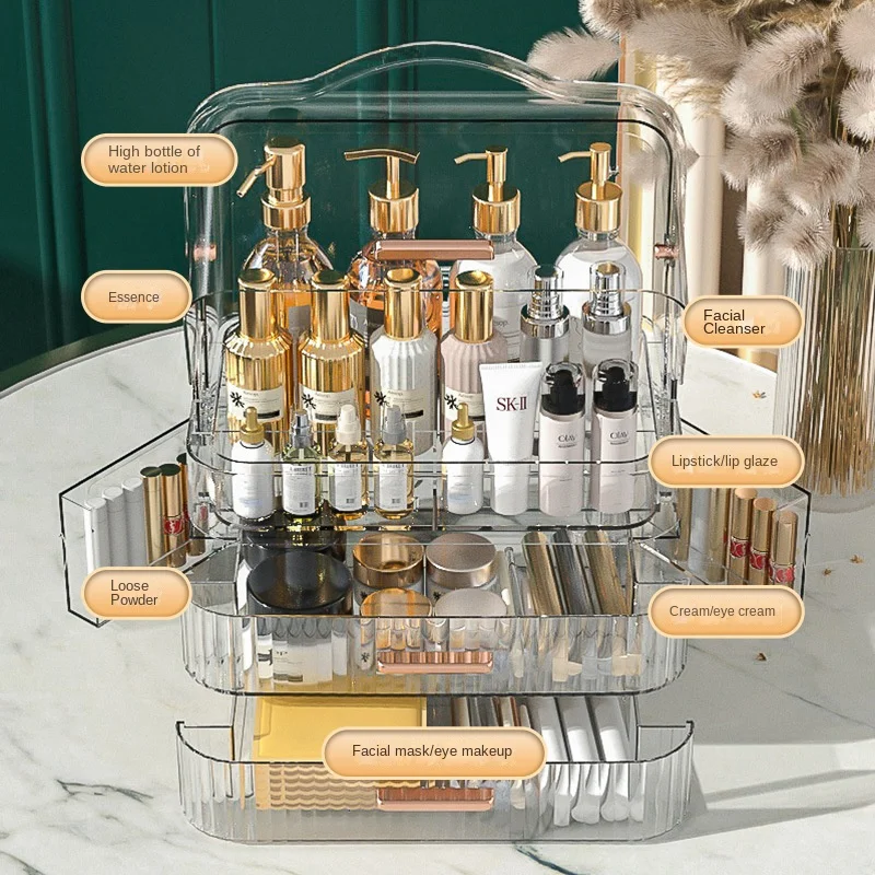 Womenquality Luxury Cosmetic Storage Box Makeup Organizer Brush Holder Case Acrylic Storage Box Foldable Plastic Drawer Folding