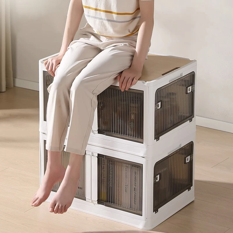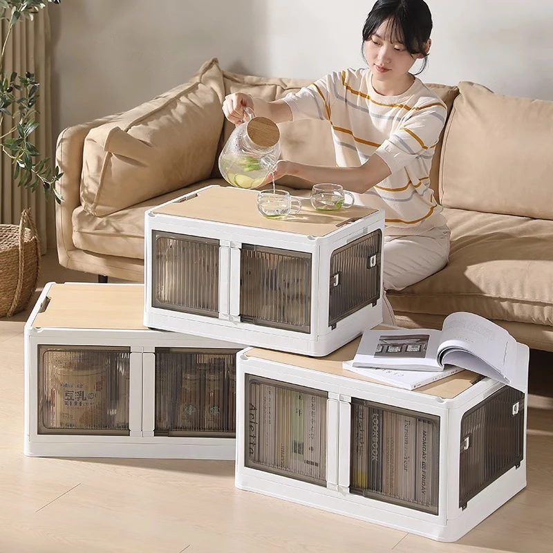 Plastic Foldable Storage Boxes & Bins Portable Indoor Outdoor Camping Five Two Door Container Organizer With Wooden Lid