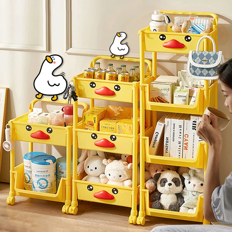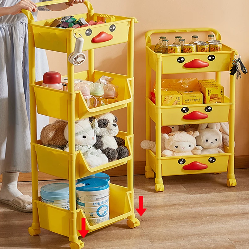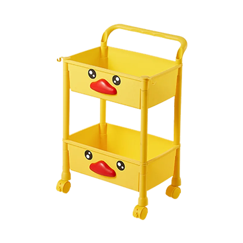 New Yellow Duck Cute Multi Layer Trolley Children Kid Teen Plastic Storage Cabinet Organizer PP Rack Shelf Shelves OEM