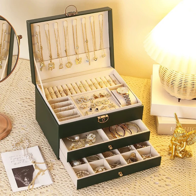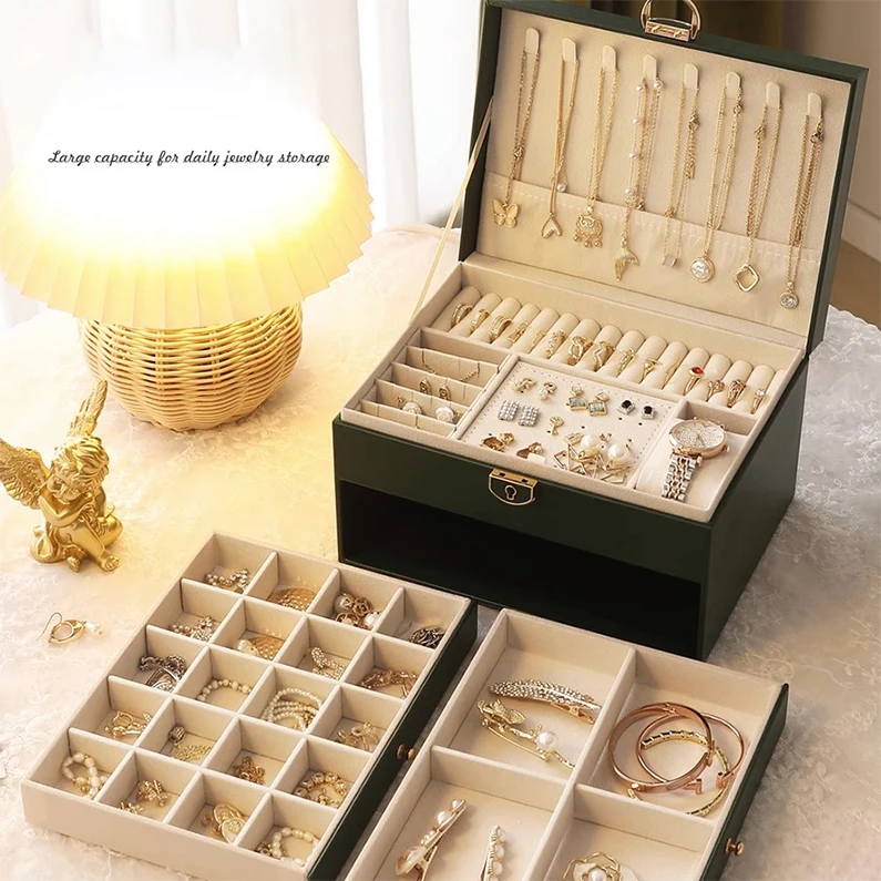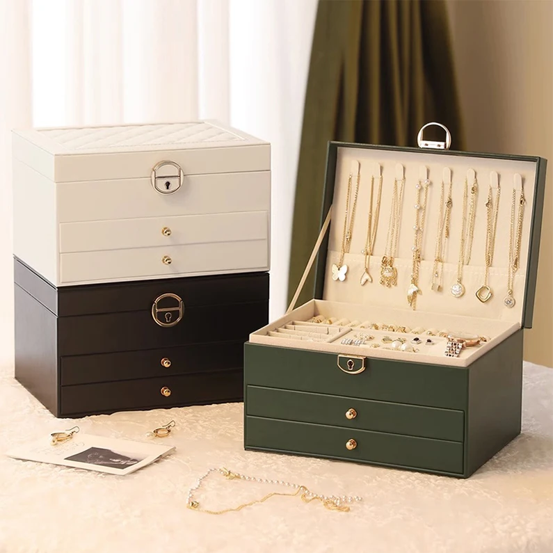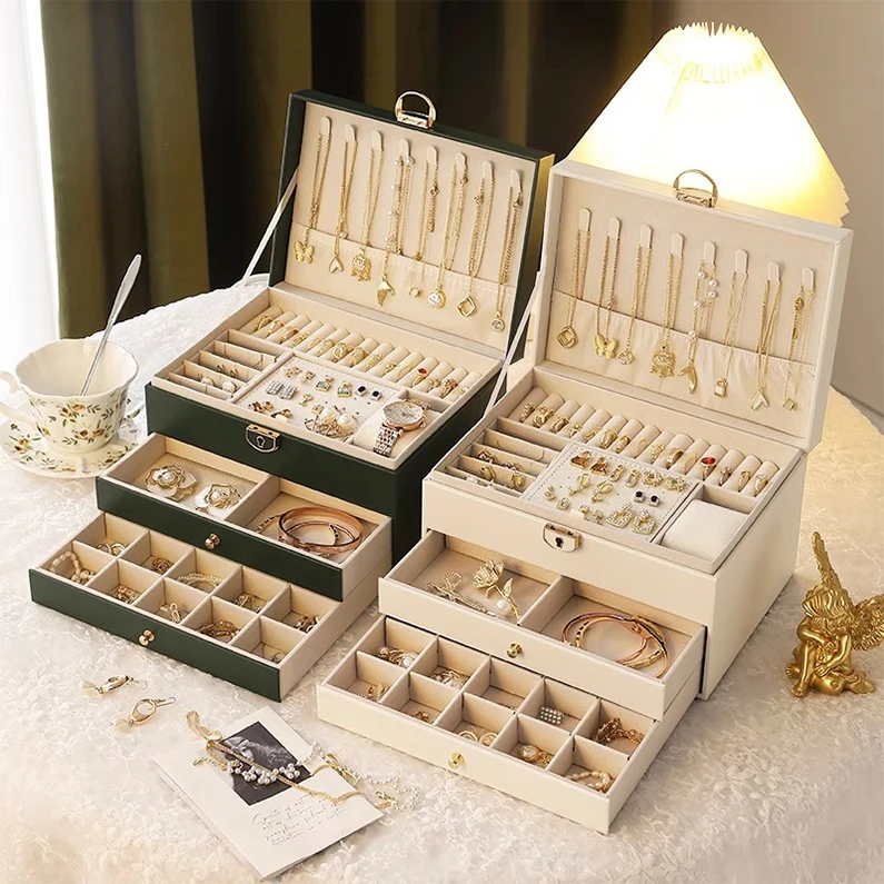 Rings Necklaces Earrings Bracelet Large Capacity Woman Girl Gift Fancy Makeup Jewelry Storage Drawer Box Case Luxury PU Leather