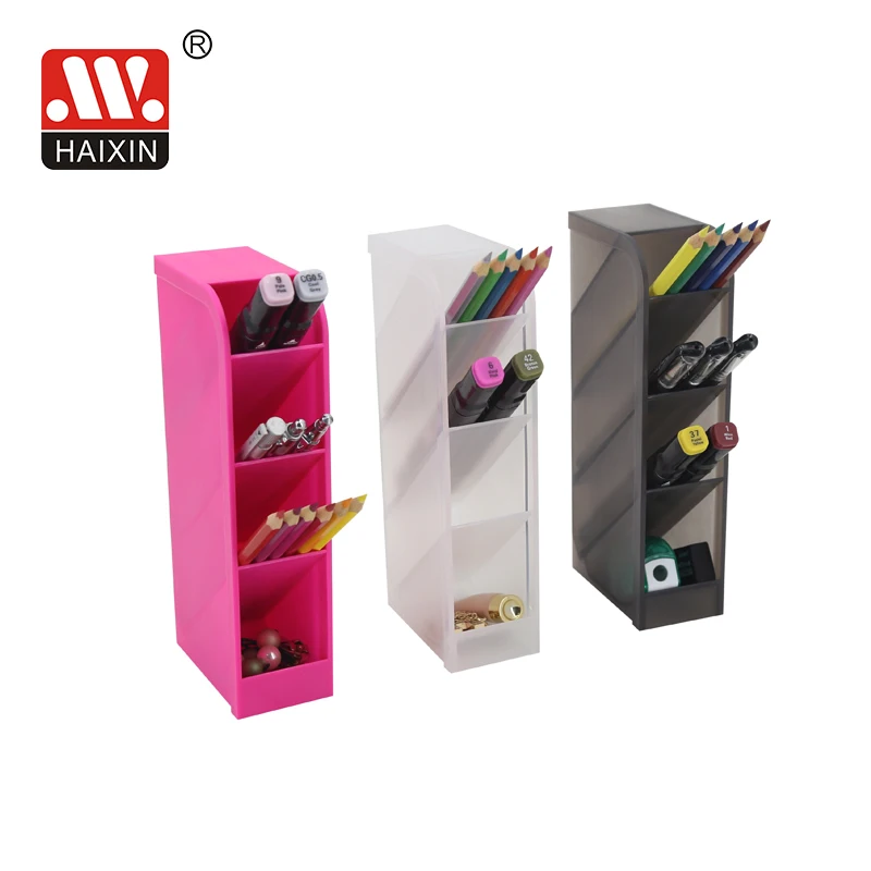 Factory new fashionable gadgets office table PP pencil jar plastic pen holder with 4 layers
