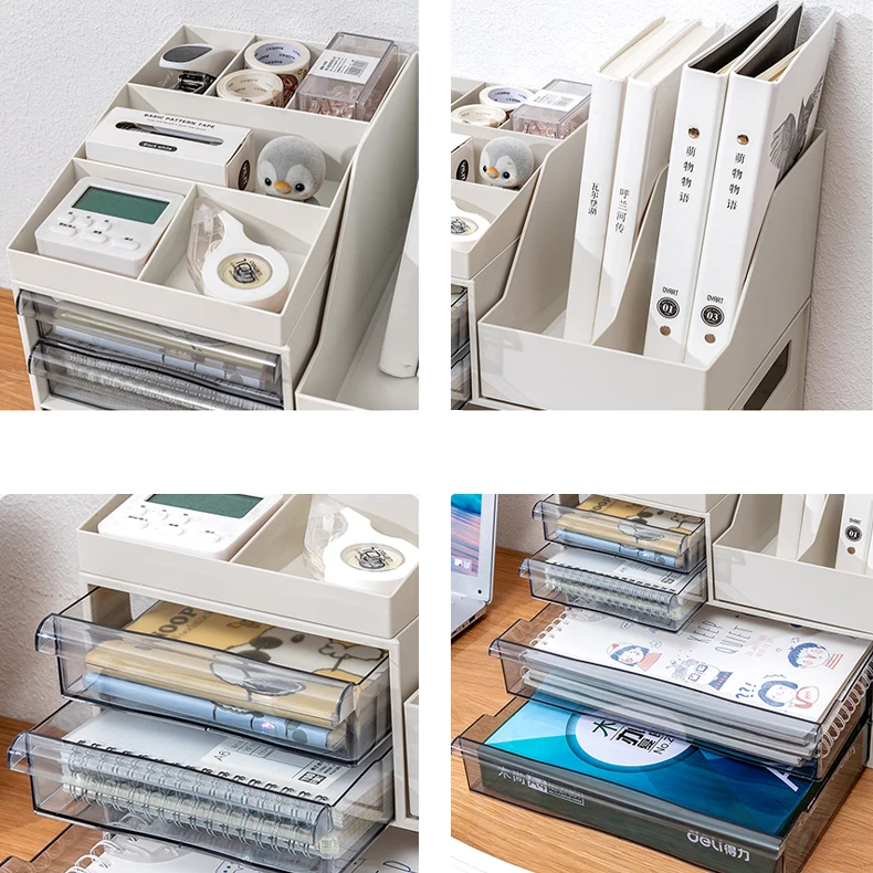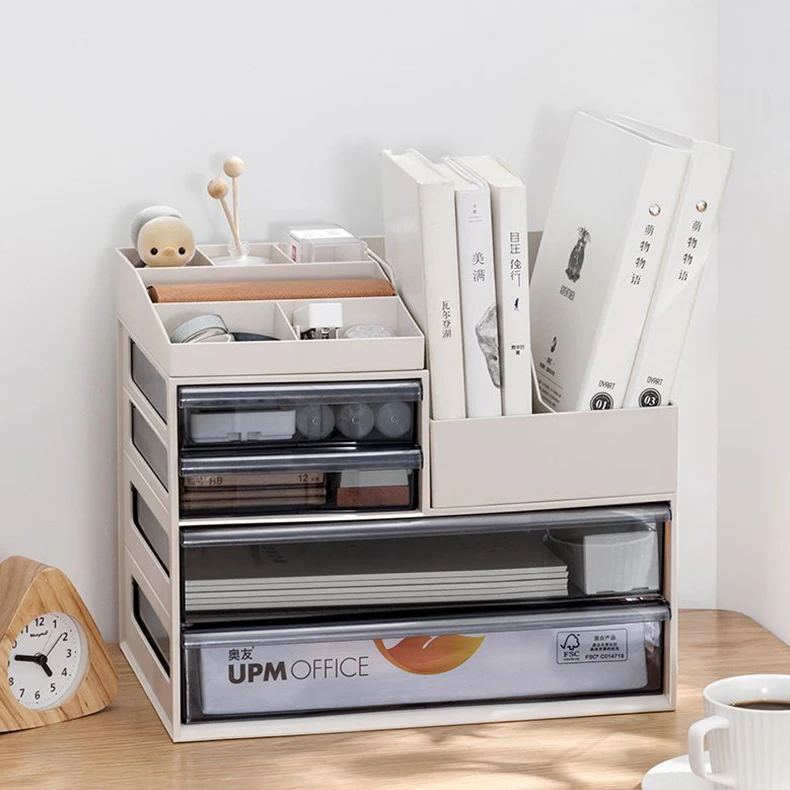 Three Four Tiers DIY Desktop Container Makeup Stackable Storage Boxes Drawer PP Shelf Organizer Bins Office File Supply Box