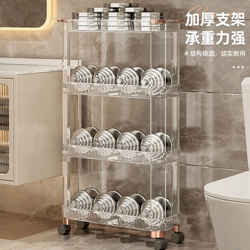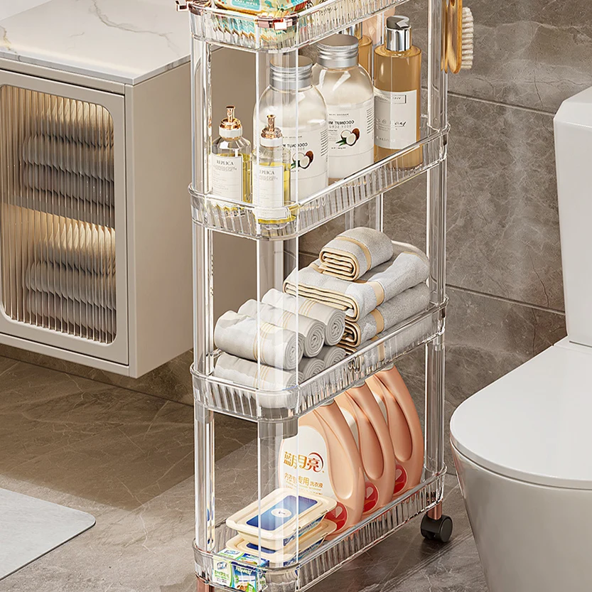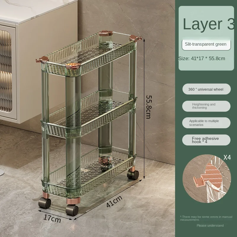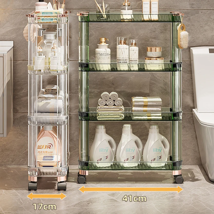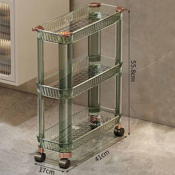 Clear Green Toilet Shelf Movable Plastic Bathroom Soap Slit Shelving Storage Holders Rack 4 Wheels 3 Tiers 17cm