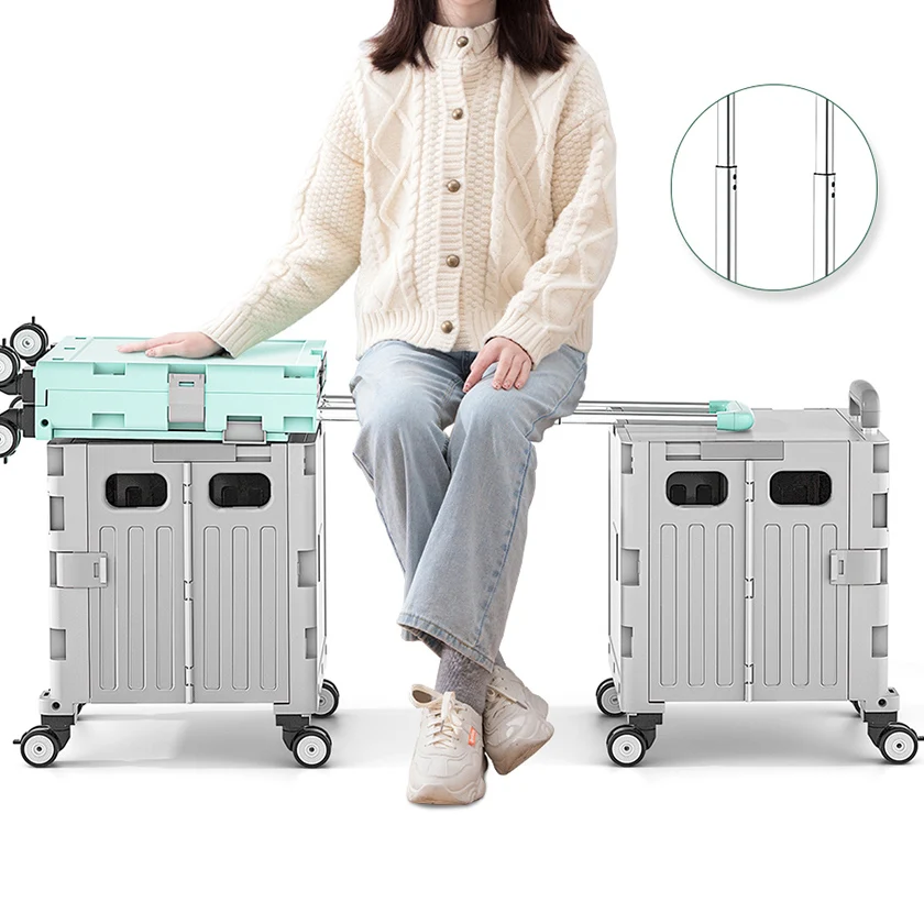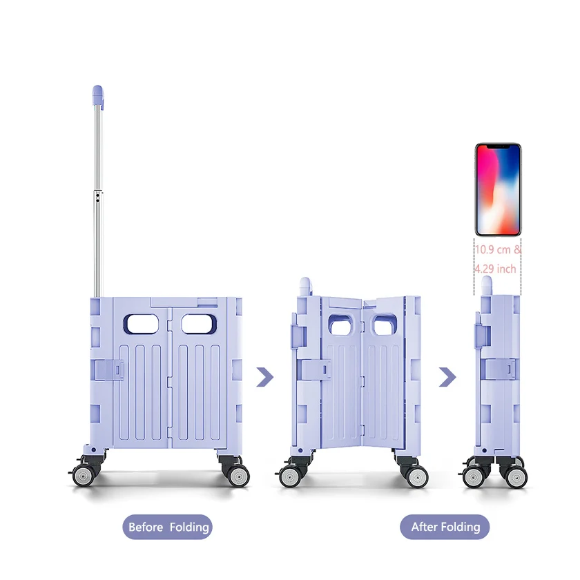 Hot Sale White Supermarket Collapsible Portable Plastic Boxes Foldable Storage Shopping Carts Trolleys Grocery Folding Steel