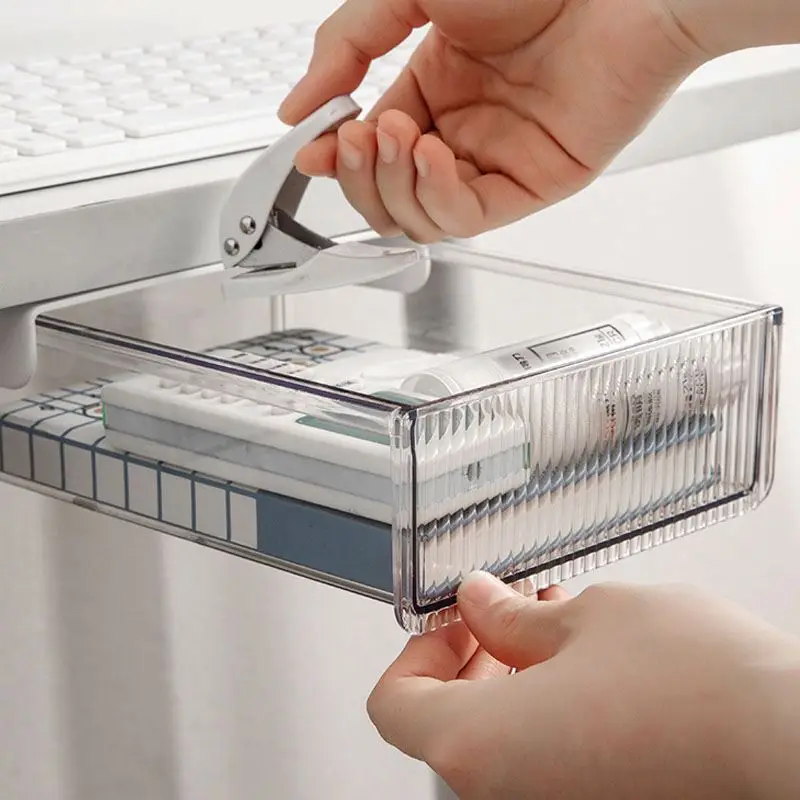 New Design Self-Adhesive Under-Desk Drawers Under Desk Felt Drawer Transparent In Office