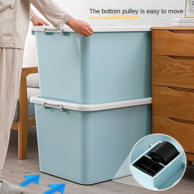 Large Clothes Beer Storage Box Plastic Quilt Finishing Box with Pulley Car Lid Clothes Collapsible Container Storage Bin Folding