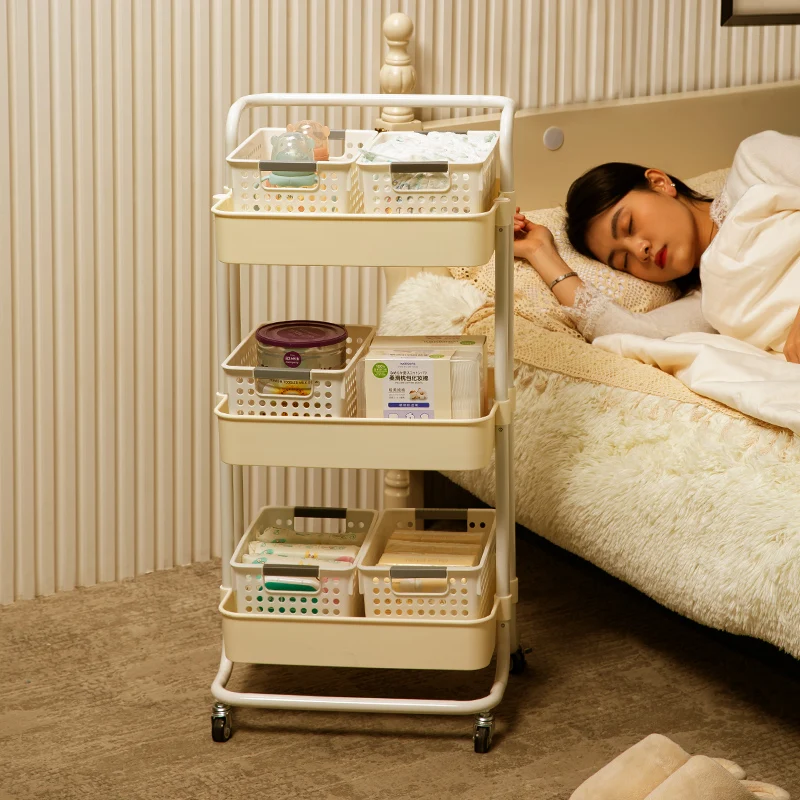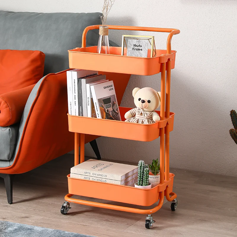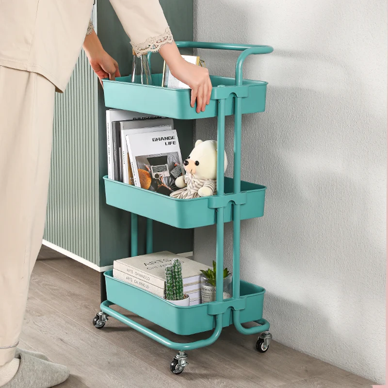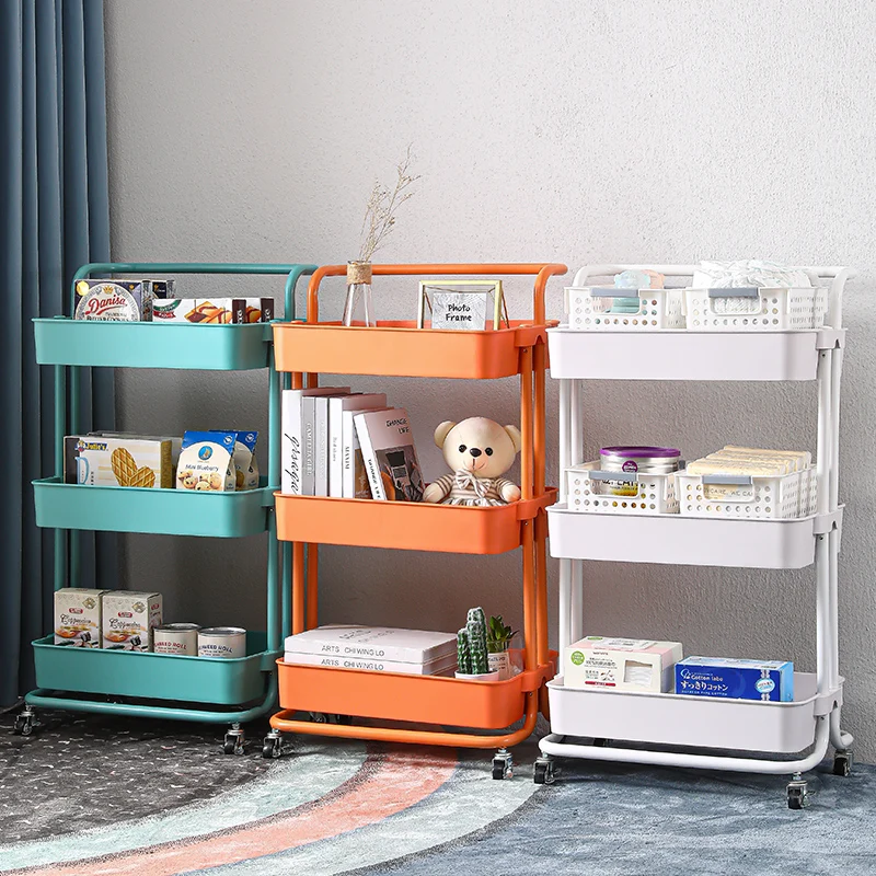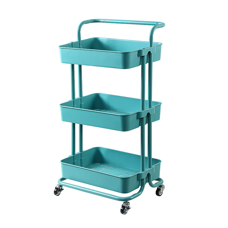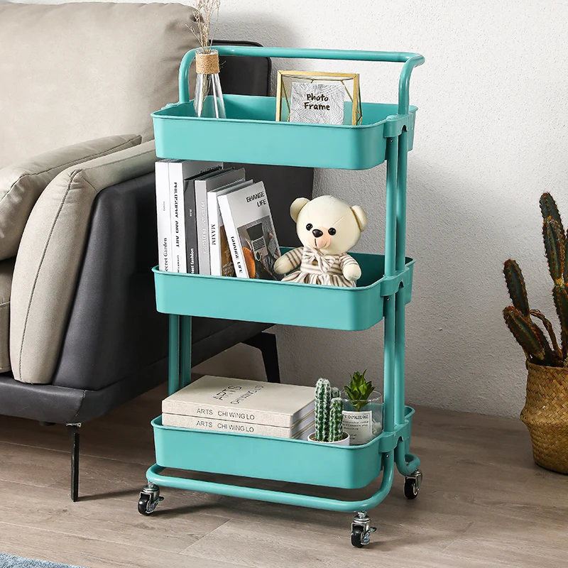 3-tier kitchen mobile carbon steel rolling storage cart plastic storage rack for fruits and vegetables