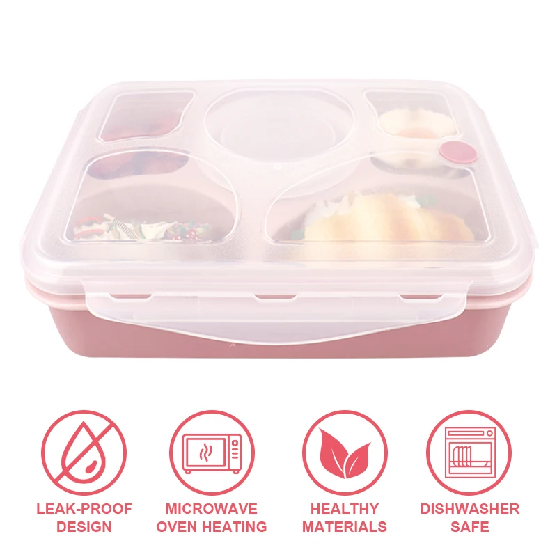 Item | 5 Compartment Food Prep Container Plastic Bento Lunch Box |