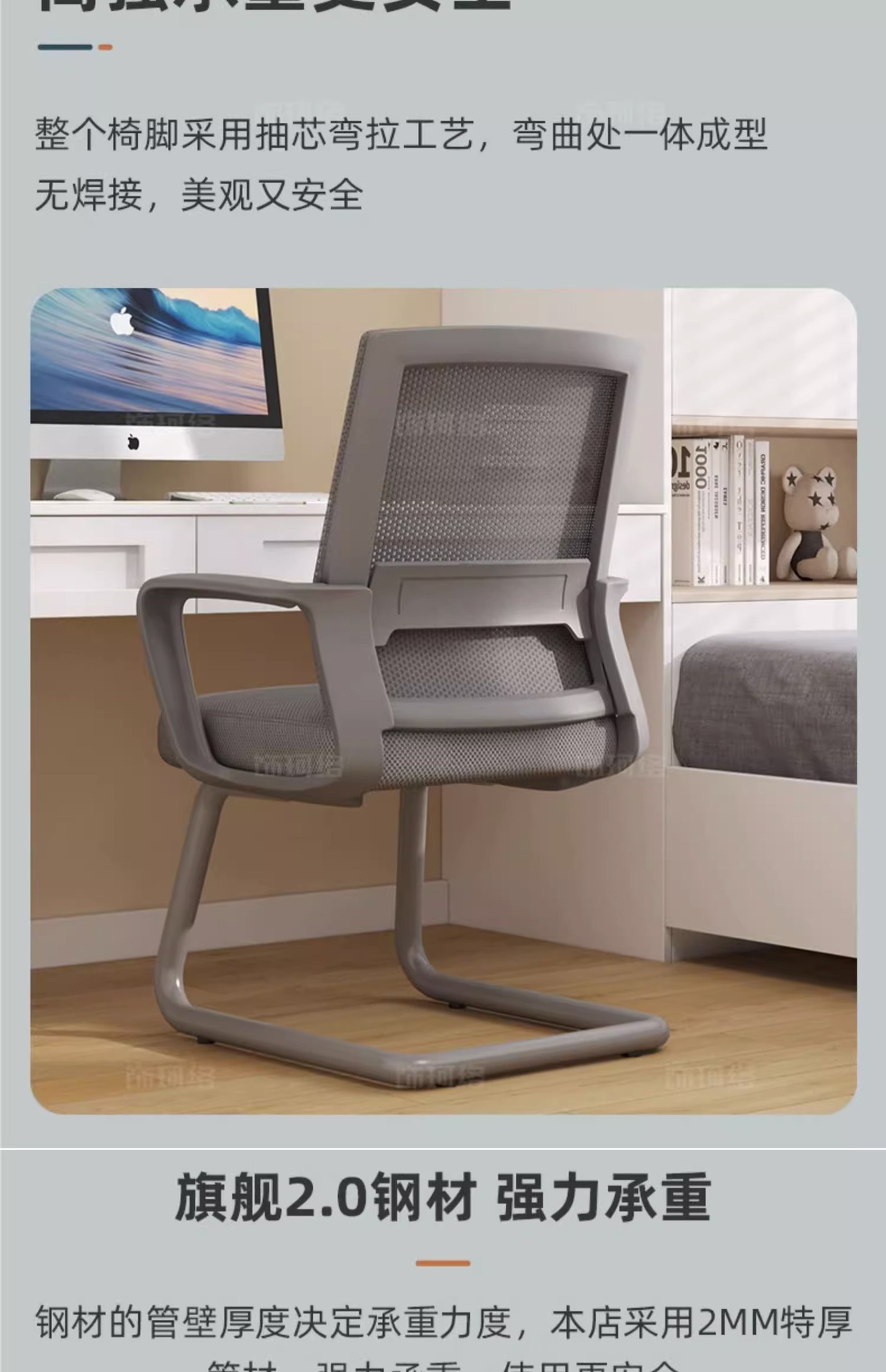 pulley + adjustable headrest white frame gray net load-bearing 250.00kg-nylon feet