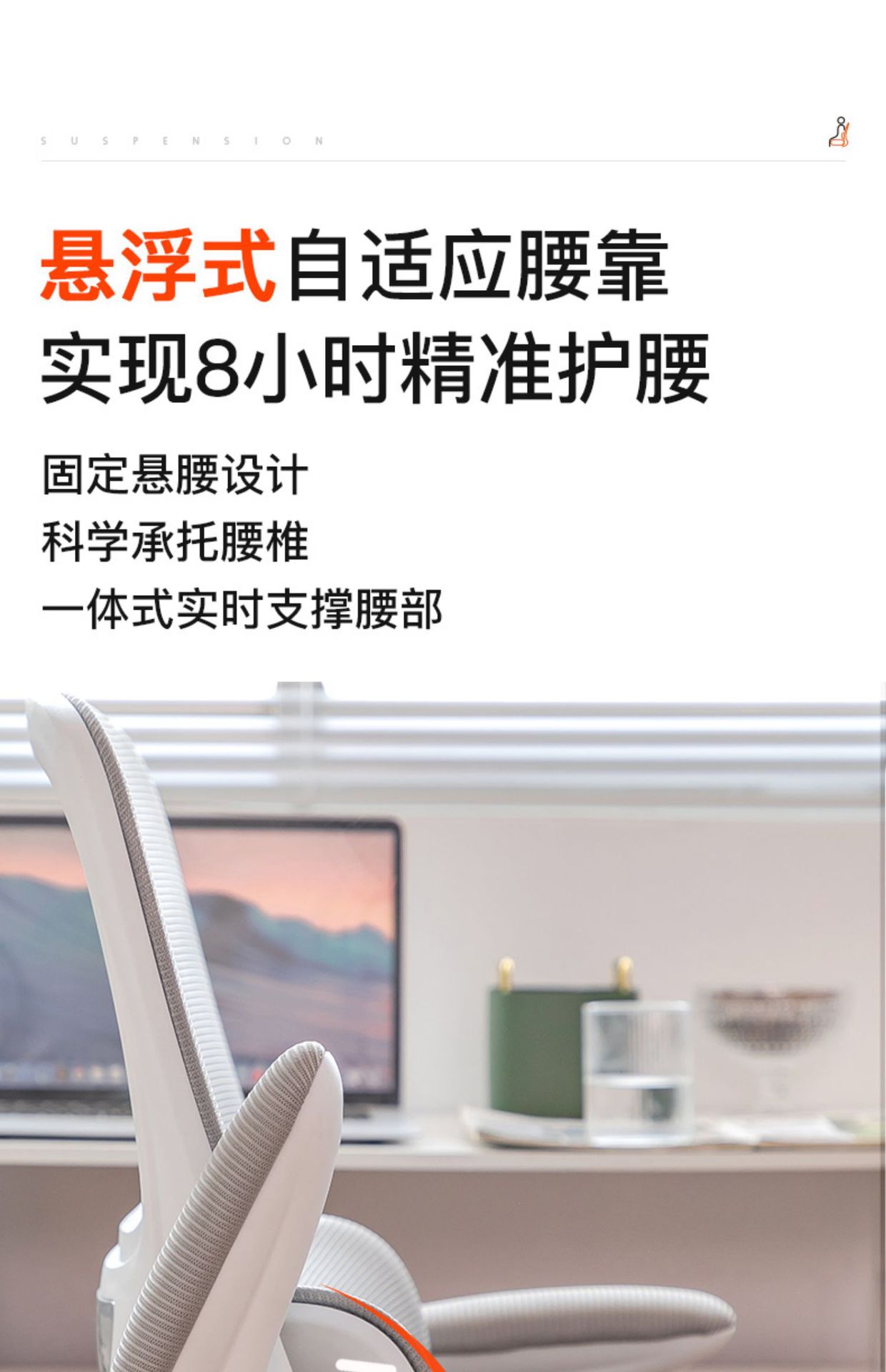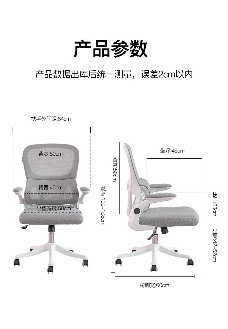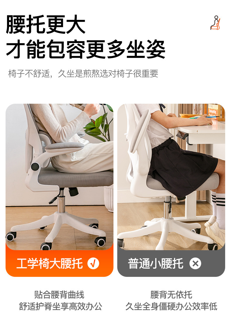 waist support-white frame black mesh universal wheel (level 3 gas rod + explosion-proof tray)