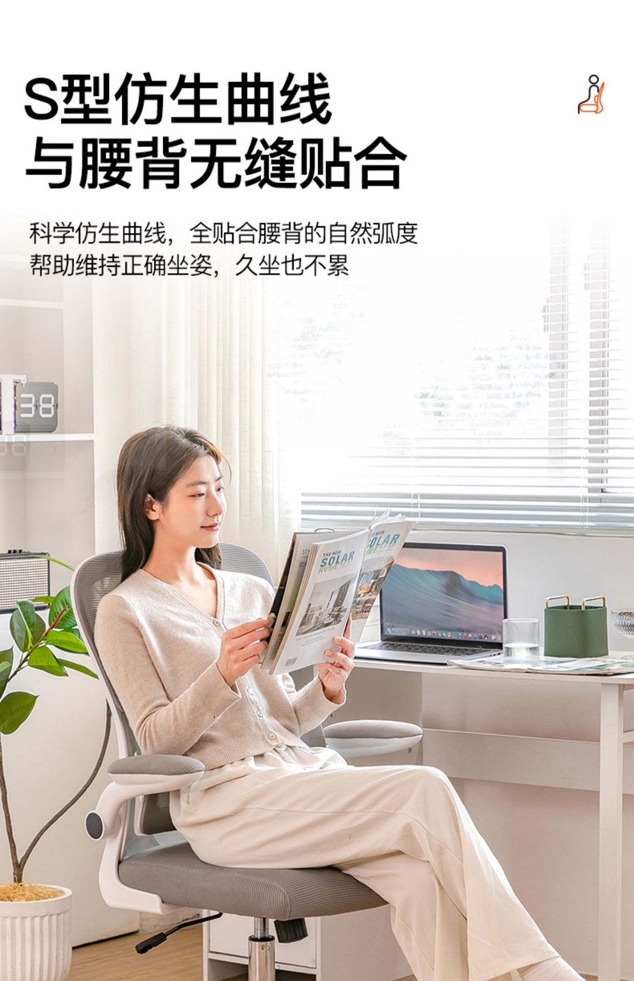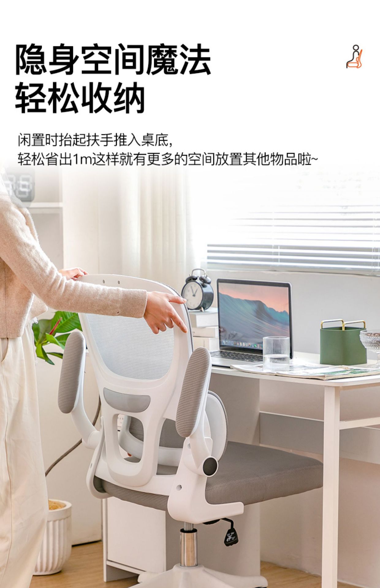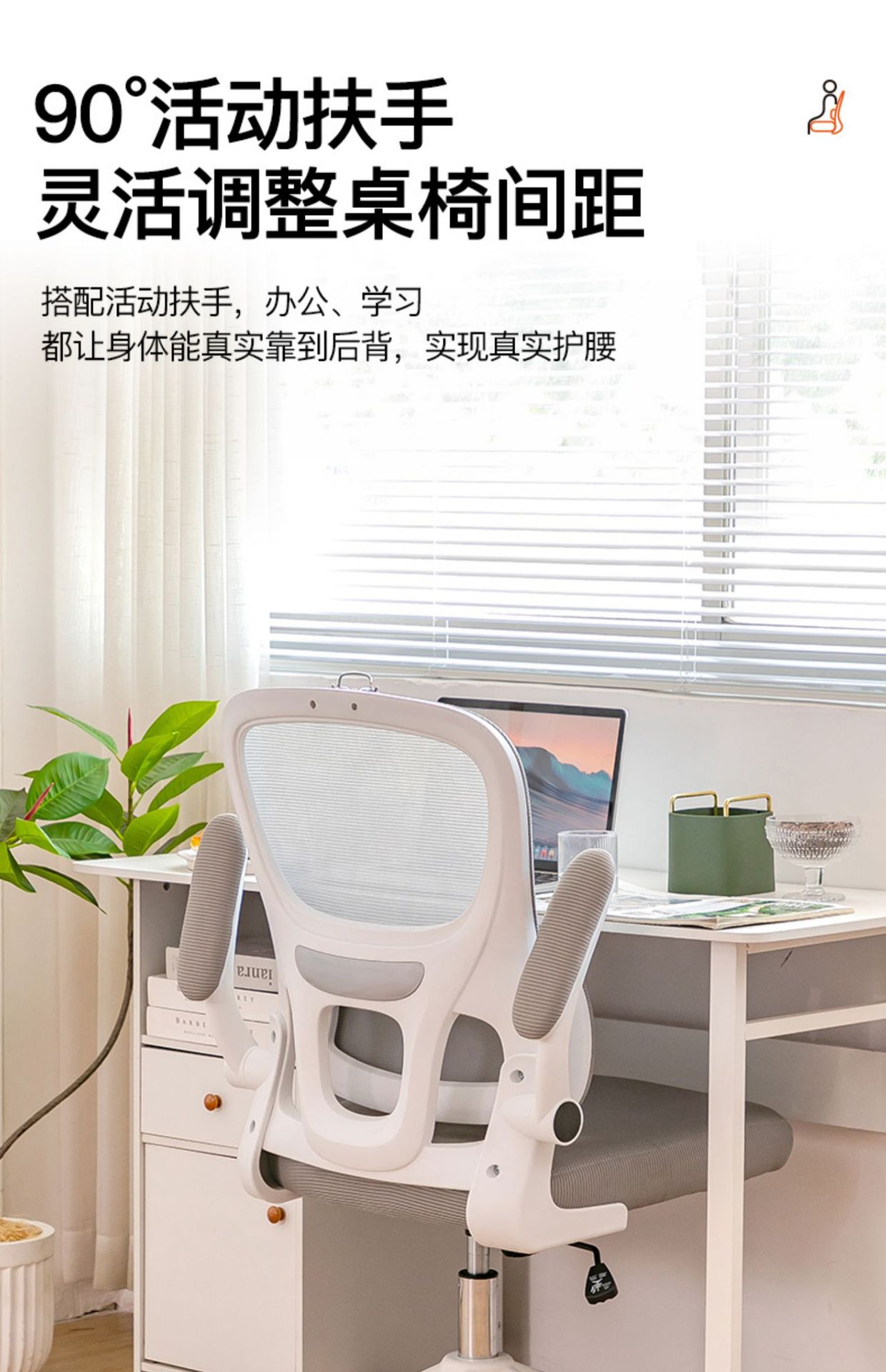 waist support-white frame black mesh universal wheel (level 3 gas rod + explosion-proof tray)