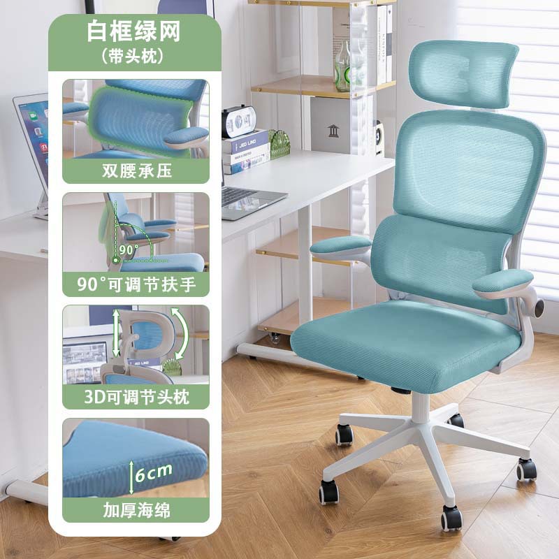 waist support-white frame green net (3d headrest + level 3 gas rod + explosion-proof tray)