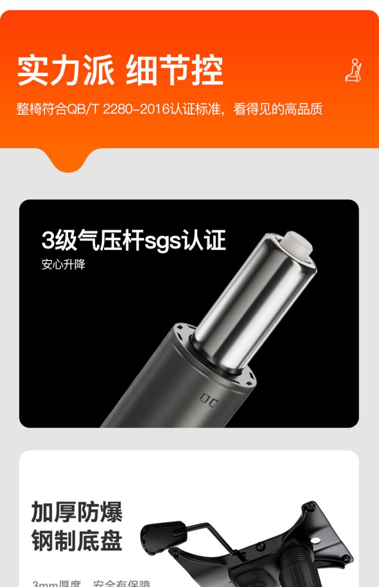 waist support-white frame gray net (level 3 gas rod + explosion-proof tray)