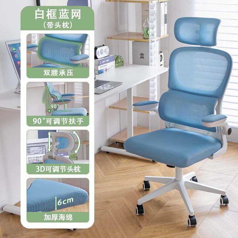 waist support-white frame blue mesh + 3d headrest (level 3 gas rod + explosion-proof tray)