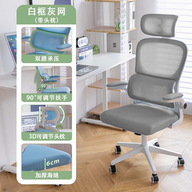 waist support-white frame gray net (3d headrest + level 3 gas rod + explosion-proof tray)