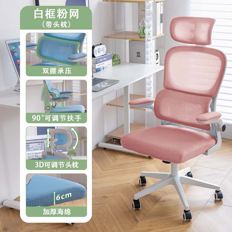 waist support-white frame pink net + 3d headrest cotton + level 3 gas rod + explosion-proof tray)
