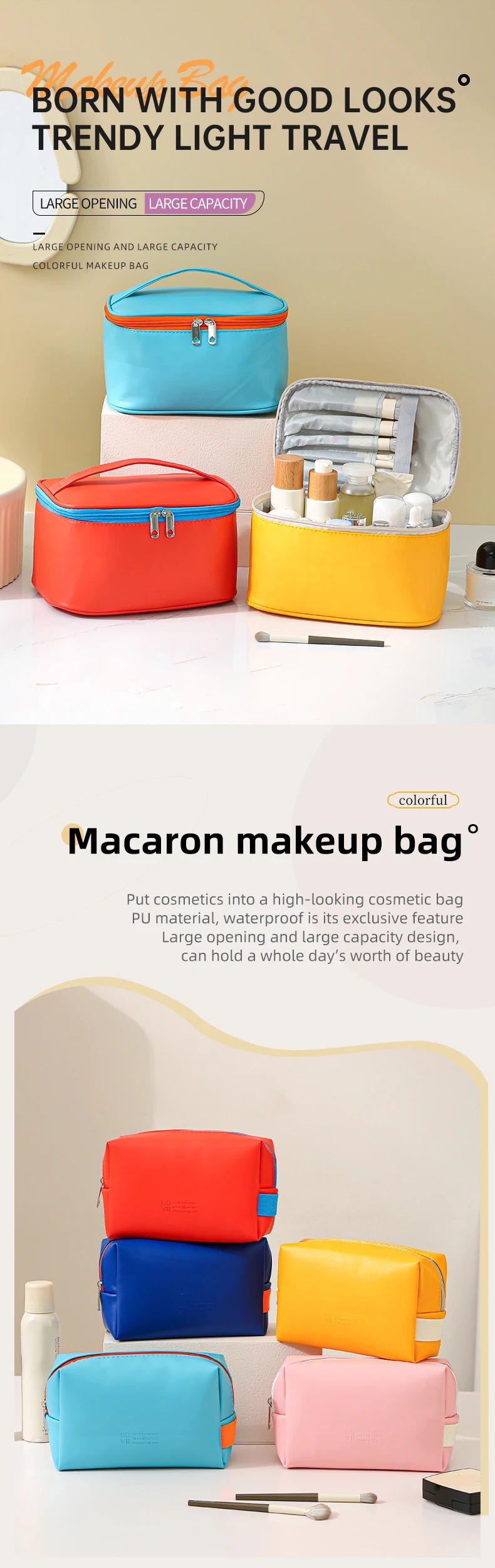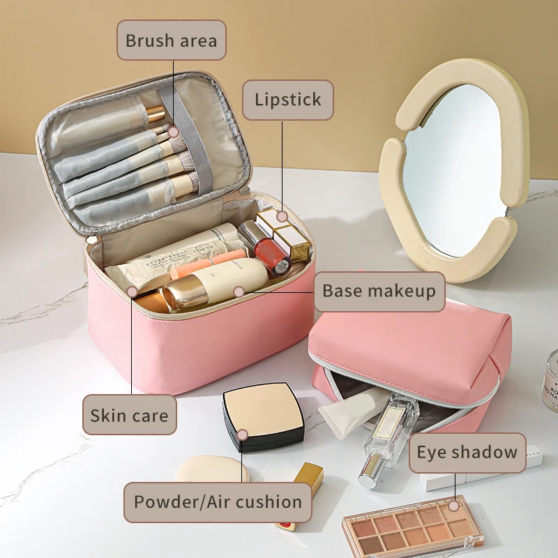 2024 New portable travel storage makeup pouch cosmetic organizer bag PU waterproof makeup cosmetic bag