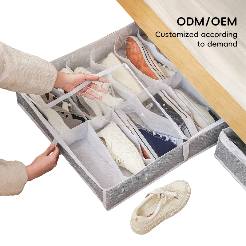 Custom Logo Folding Underbed Shoe Storage Box Dustproof and Moisture-proof Saving Space Shoes Organizer Box with Transparent Lid