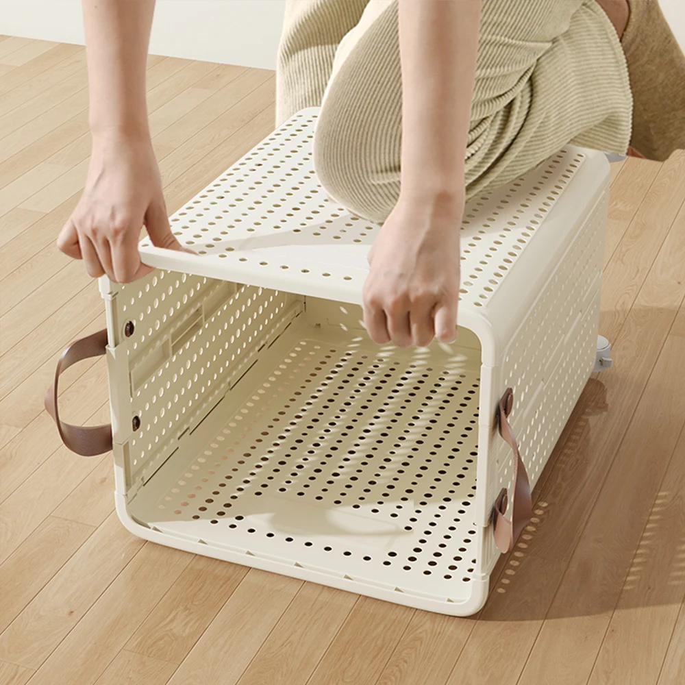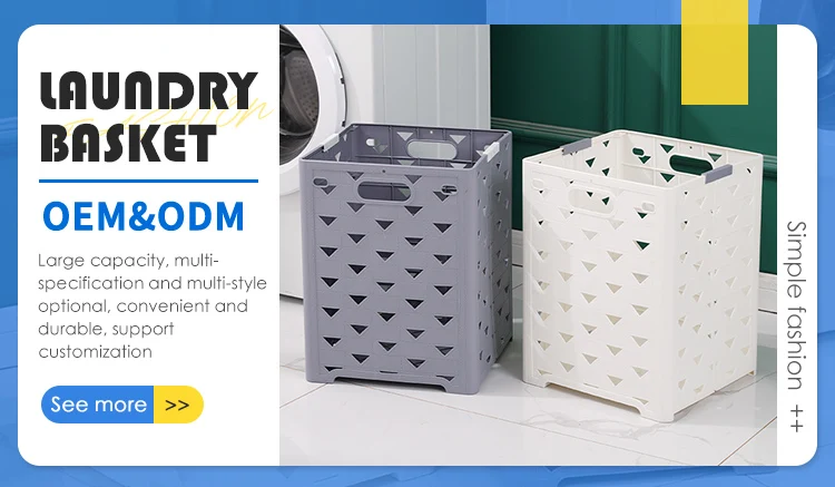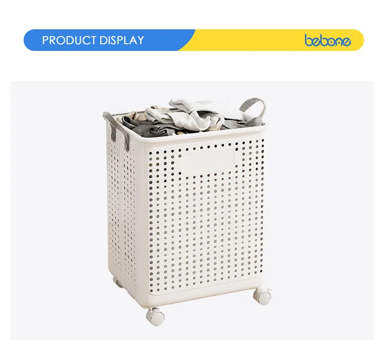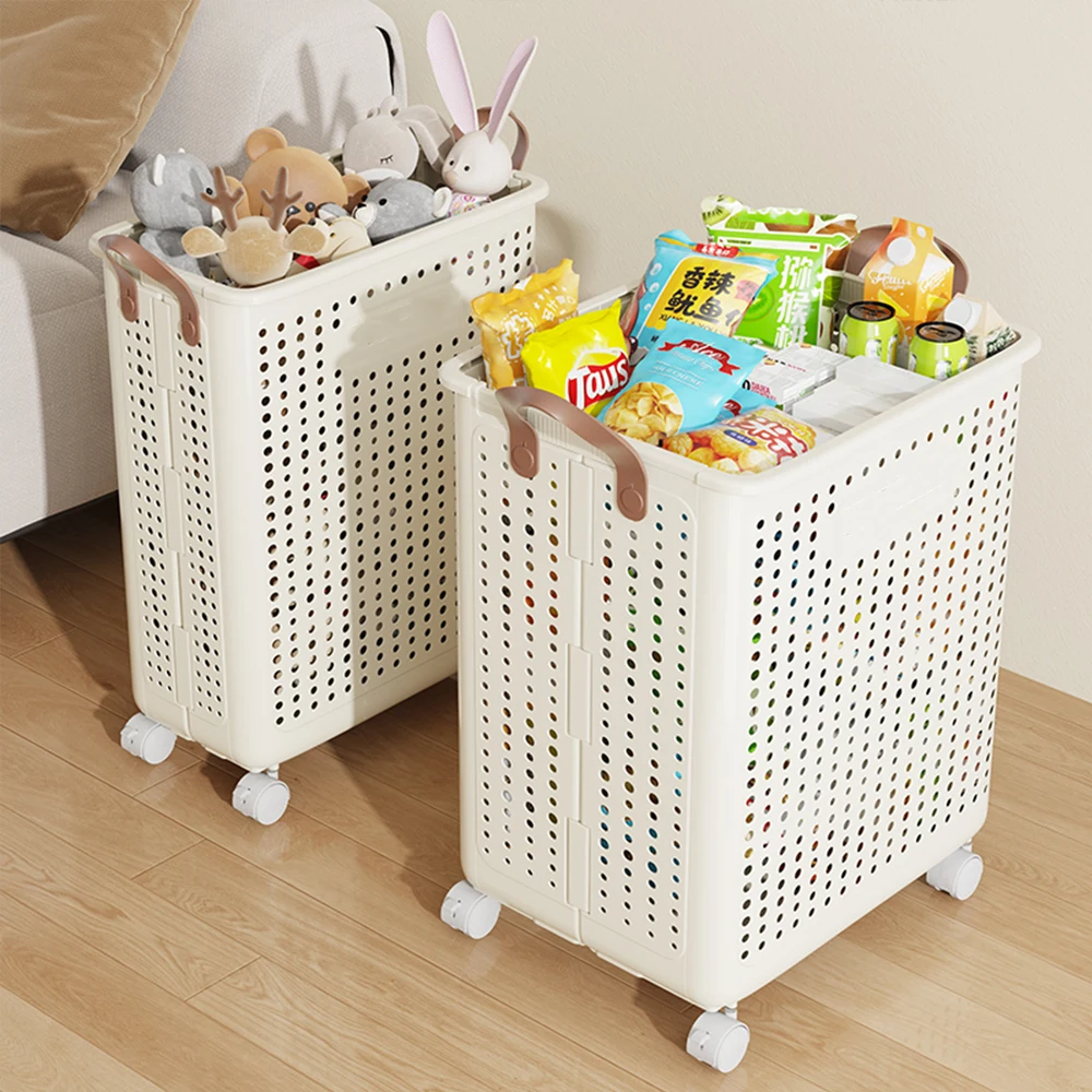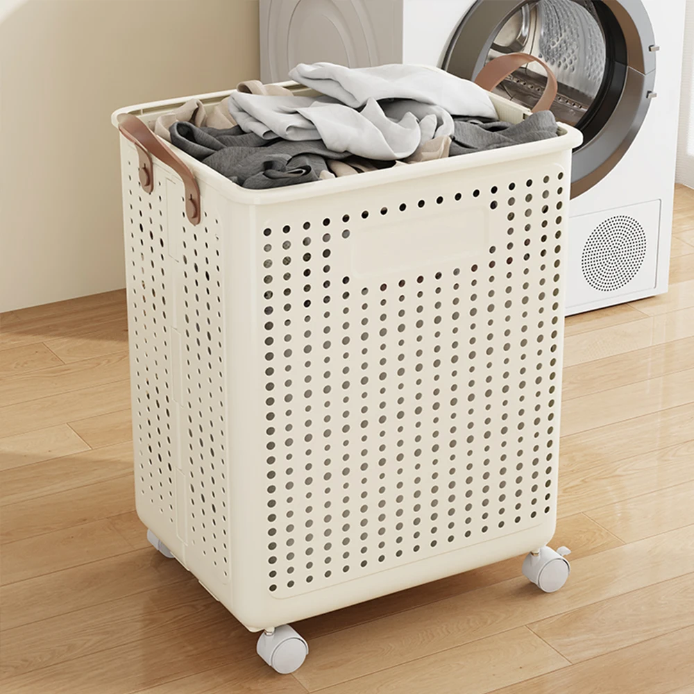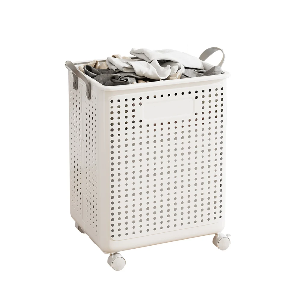 Plastic Dirty Clothes Basket Folding Household High-Value Bathroom Laundry Storage Basket With Wheels and Handle