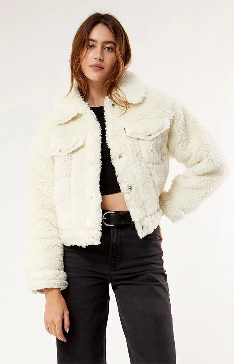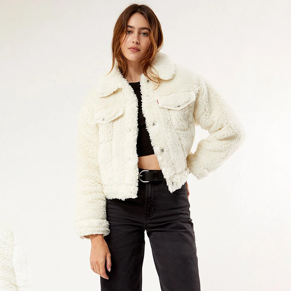 OEM Custom high quality sherpa fleece jacket women's jacket winter clothes for women fuzzy zip up fleece jacket