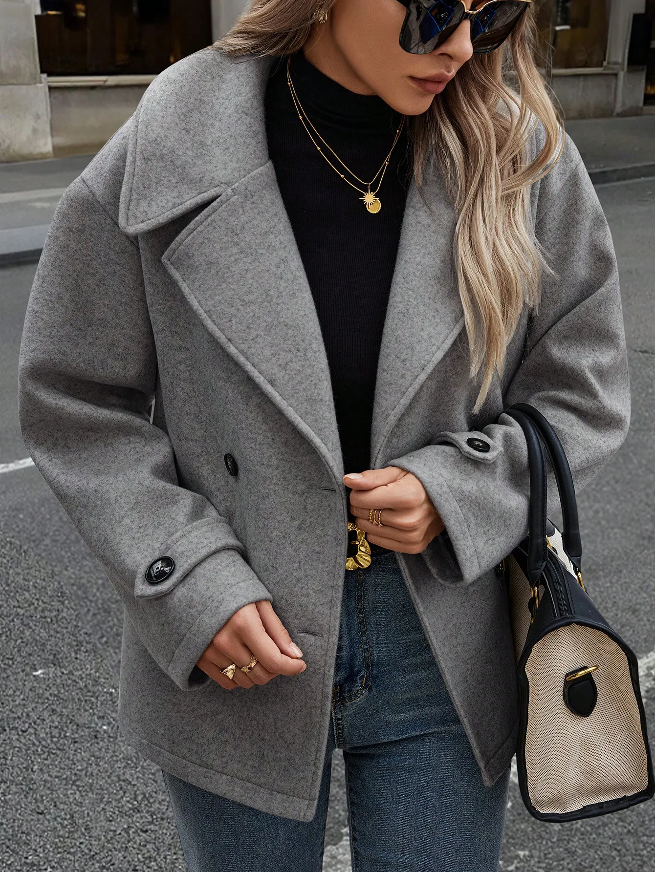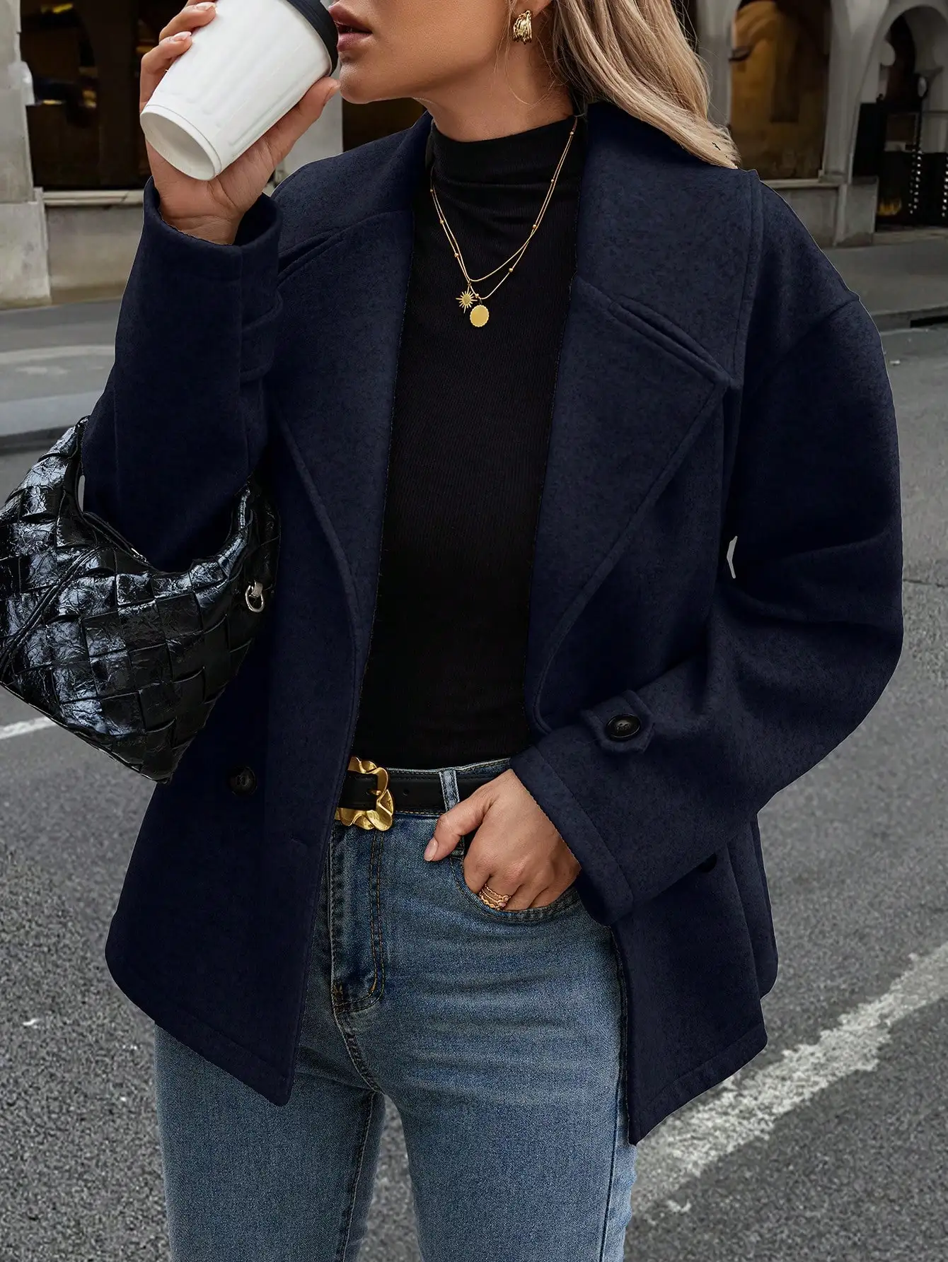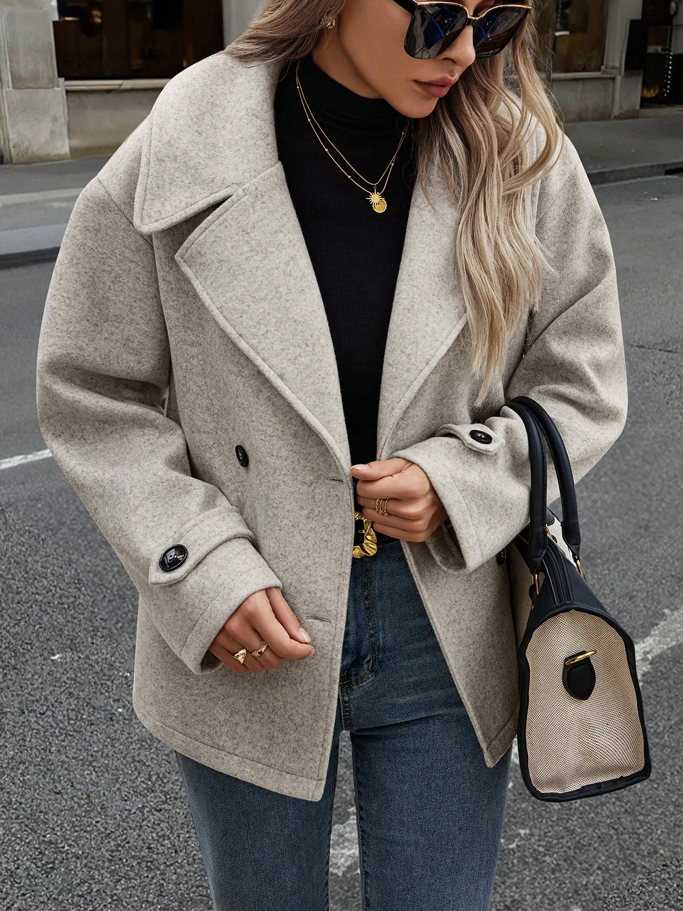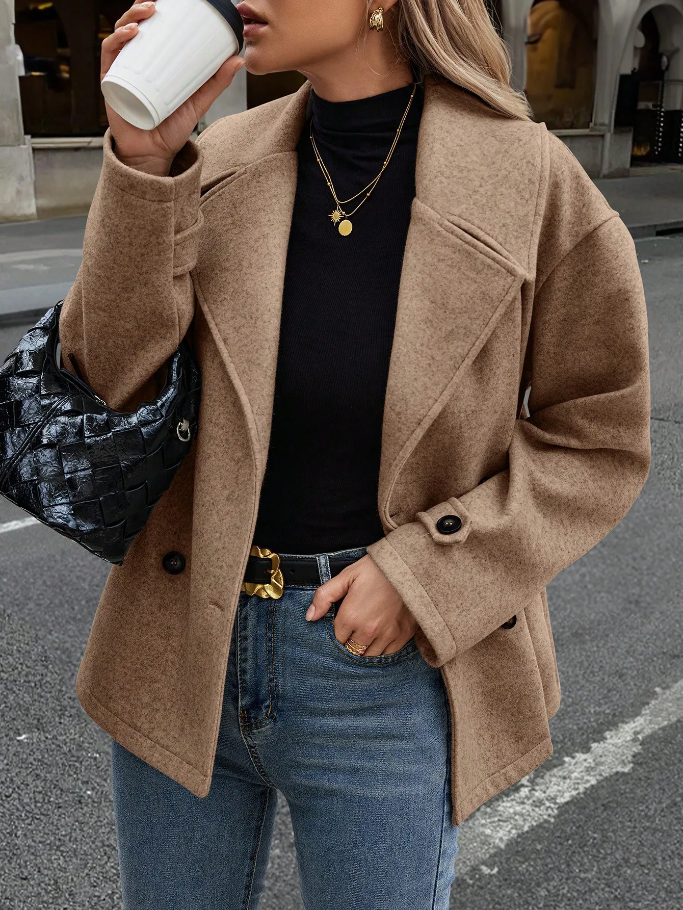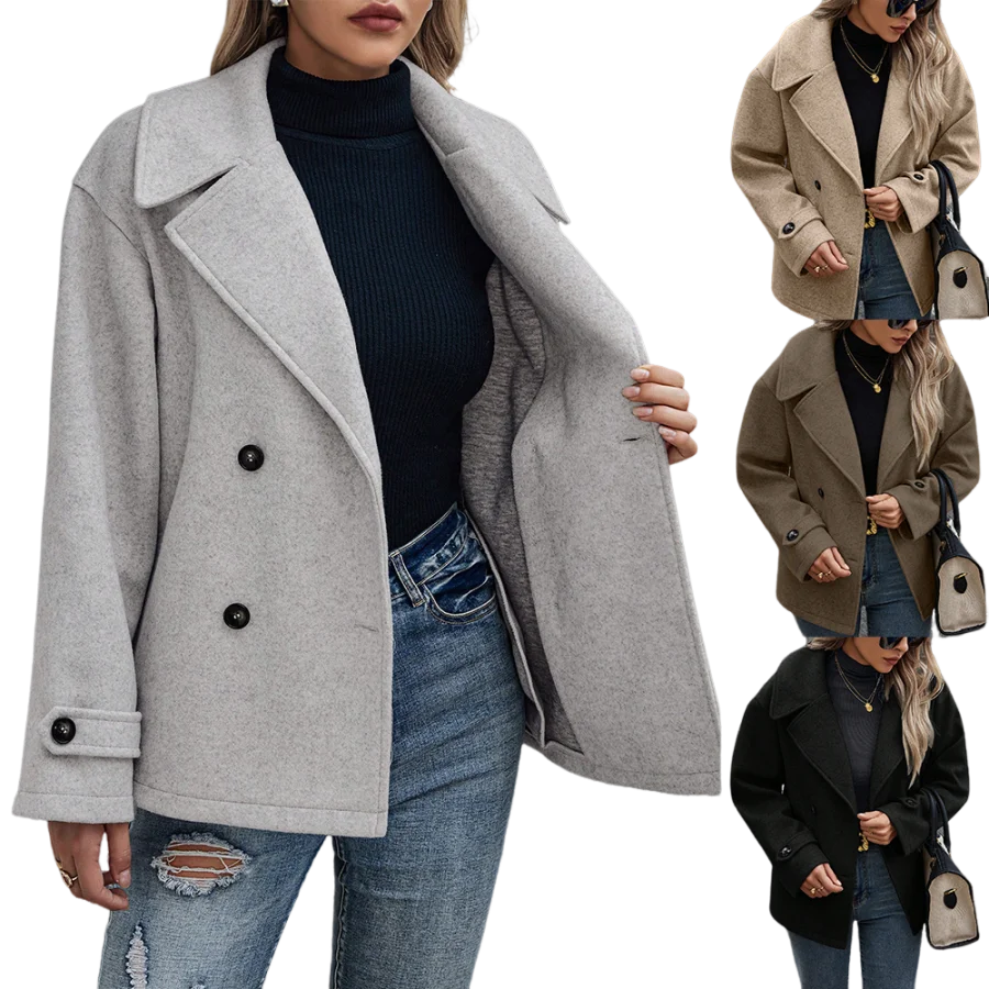 High Quality Custom Logo Women's Casual Stand Collar Double Breasted Wool Blend Coat Autumn Winter