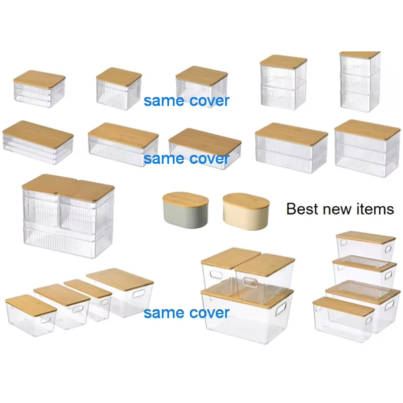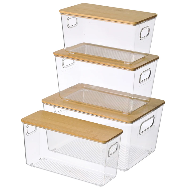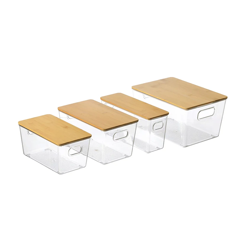 Plastic clear PET storage bin with Bamboo lids