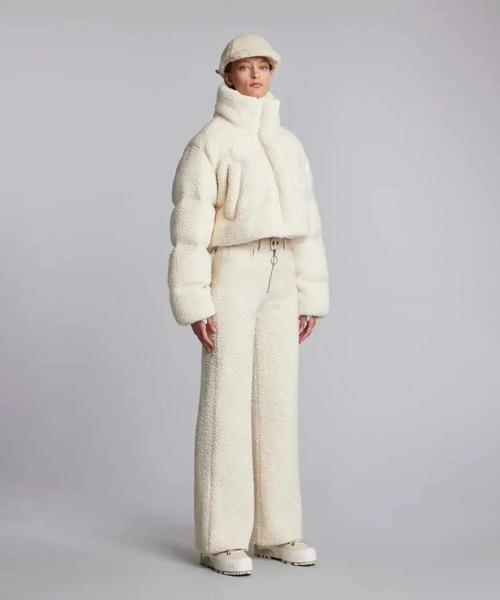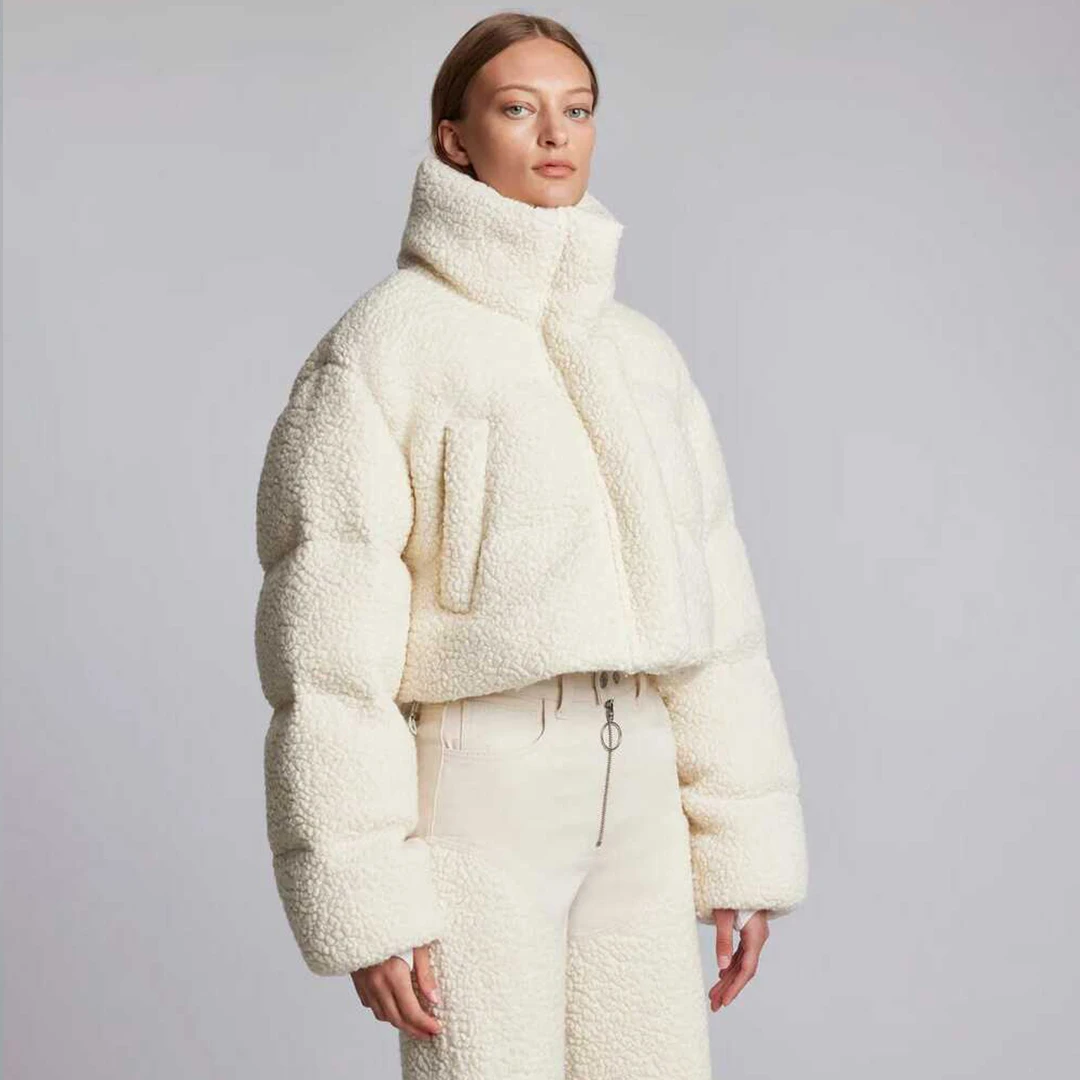 Custom logo fuzzy teddy puffer jacket zip up fur coat winter clothes for women sherpa fleece jacket
