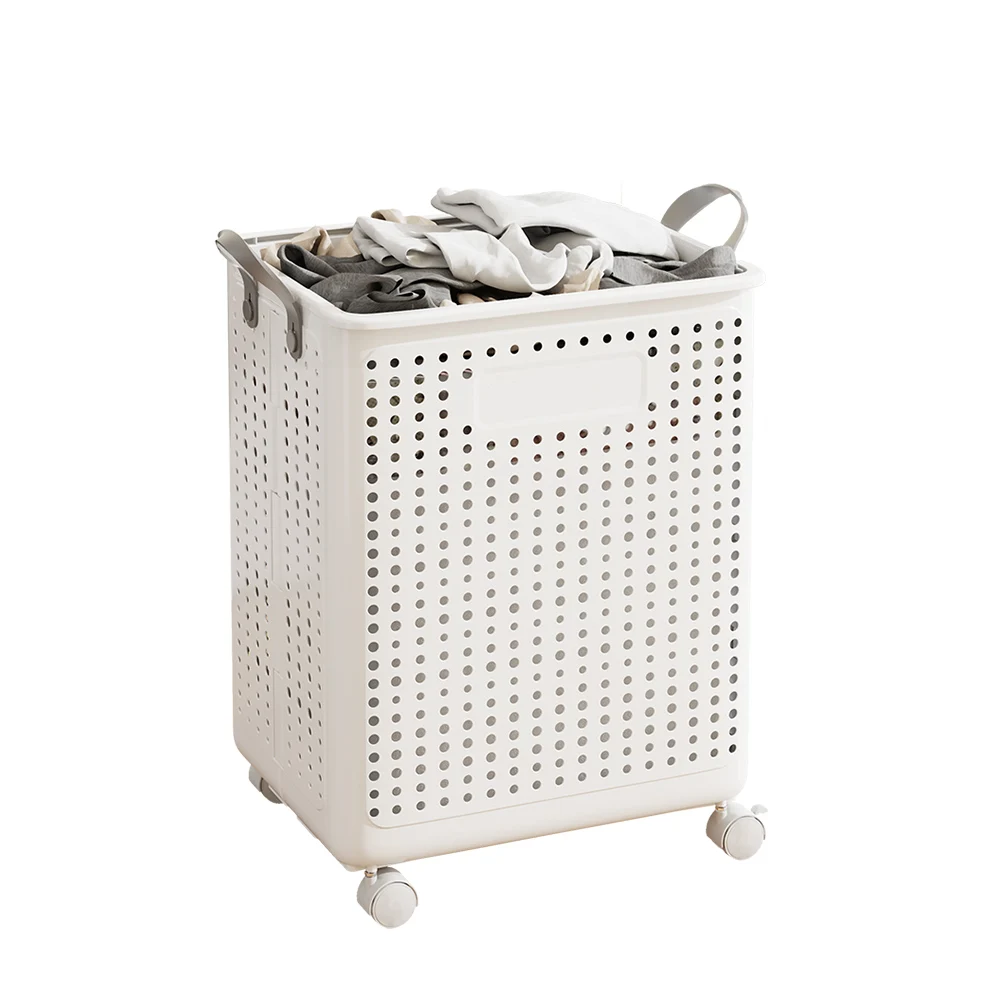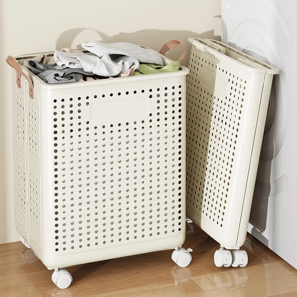 Colorful Plastic Dirty Clothes Basket Folding Household High-Value Bathroom Laundry Storage Basket With Wheels and Handle