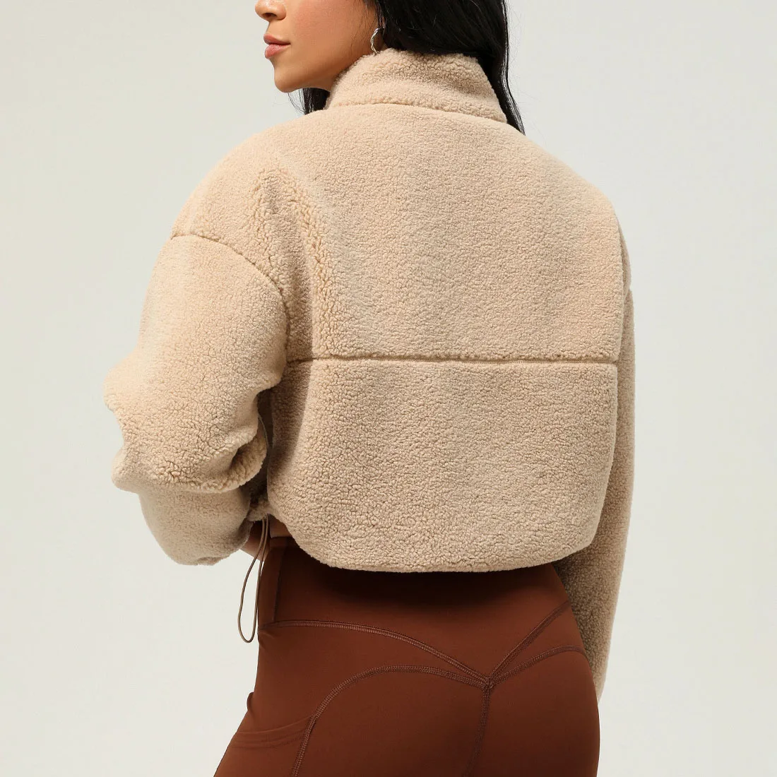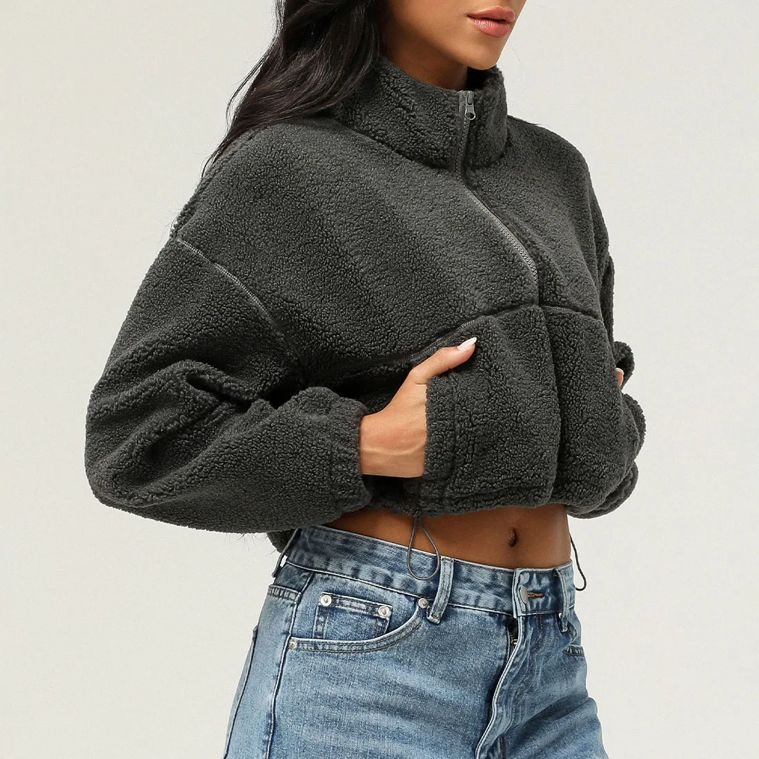 High quality custom logo zip up fleece jacket fuzzy oversized winter clothes for women casual sherpa fleece jacket