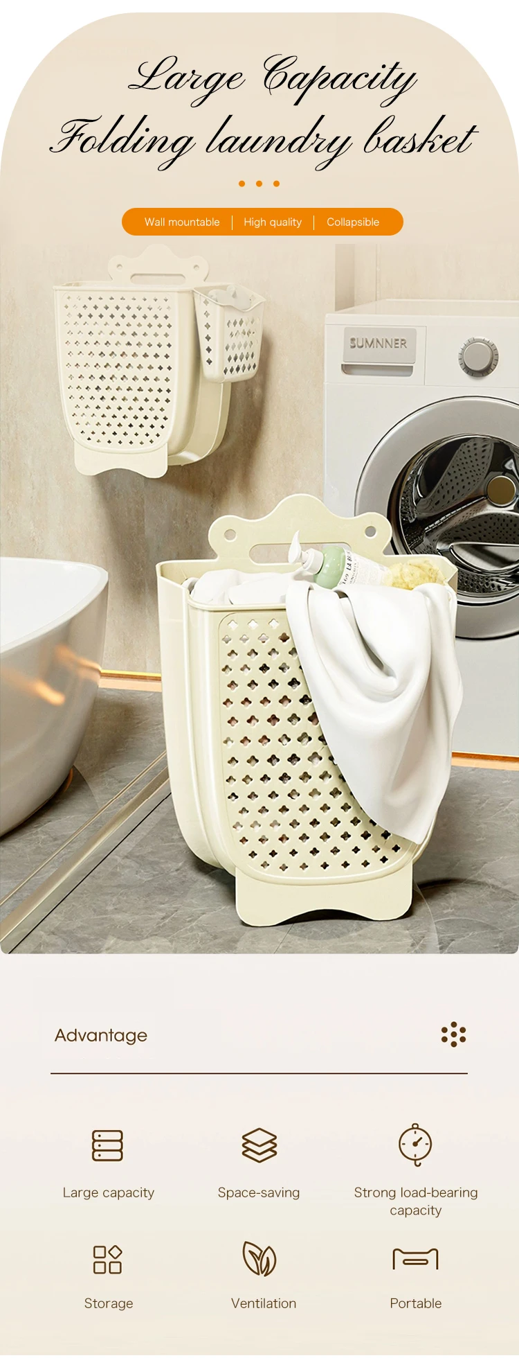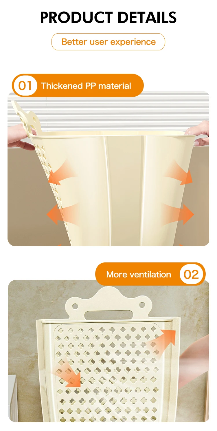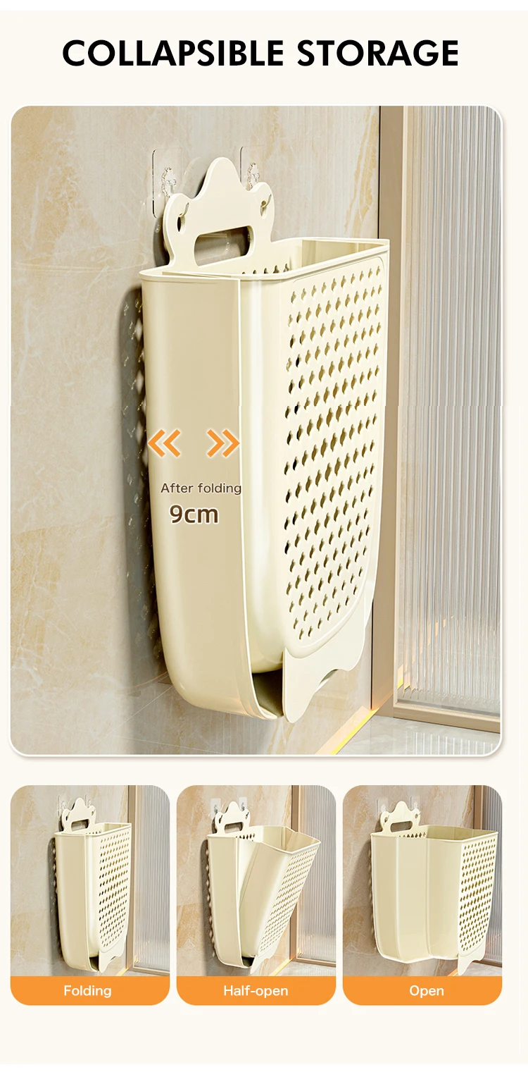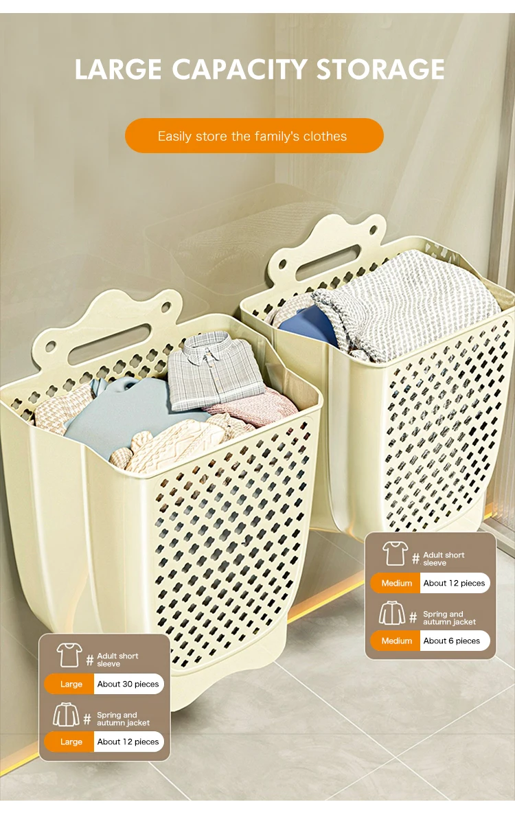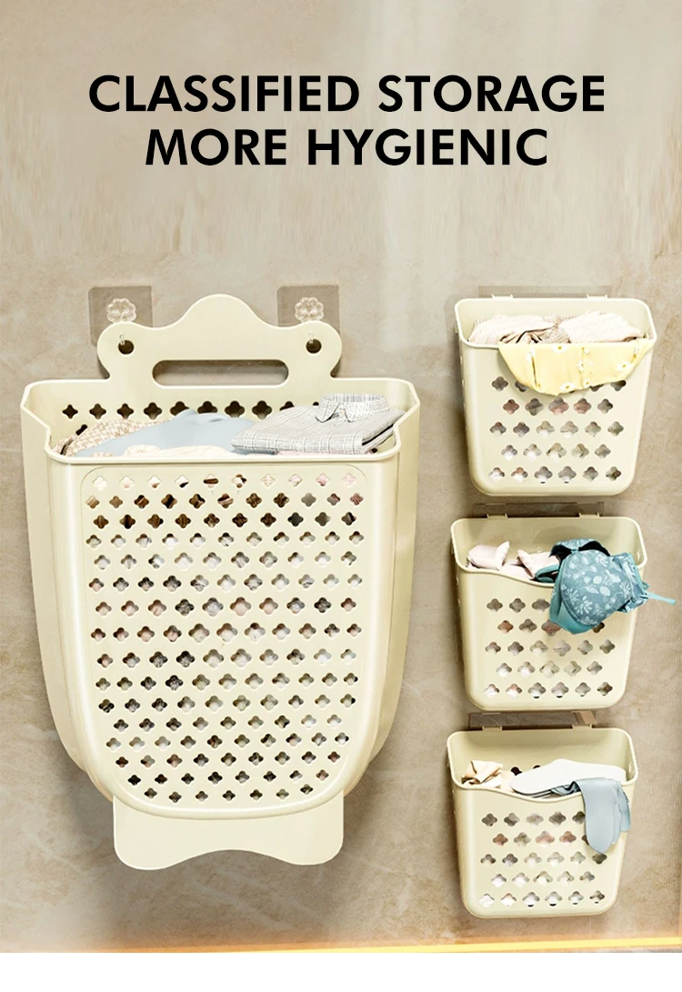Large capacity wall mounted household plastic dirty clothes folding storage laundry basket |