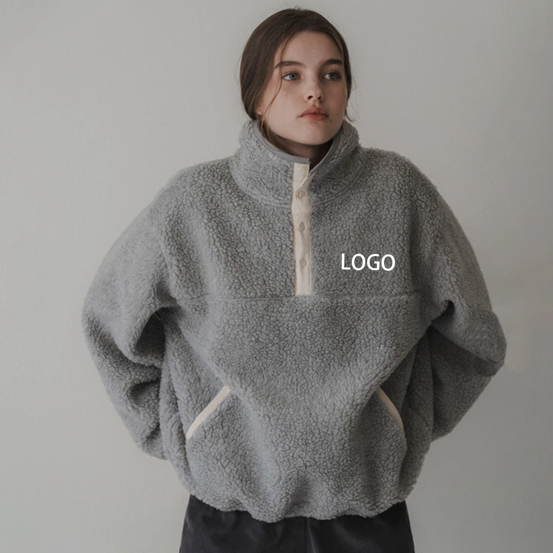OEM ODM Custom logo high quality women half zipper cropped sweatshirt sherpa pullover fleece hoodie