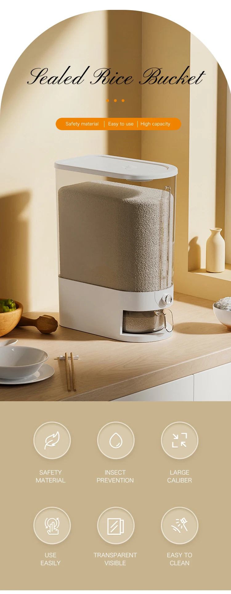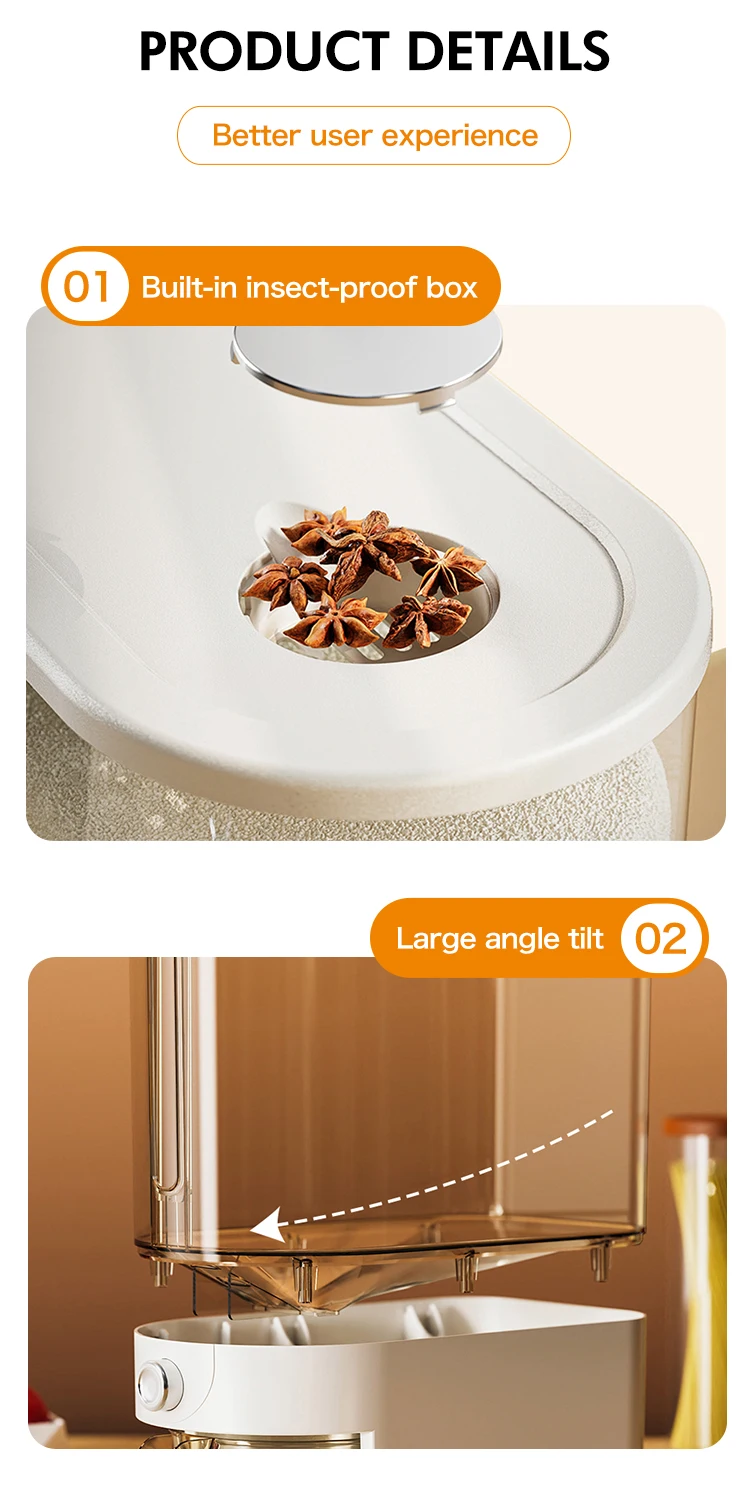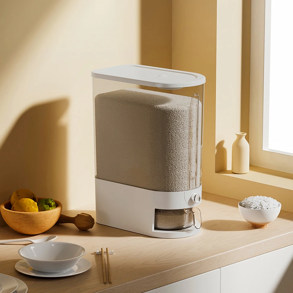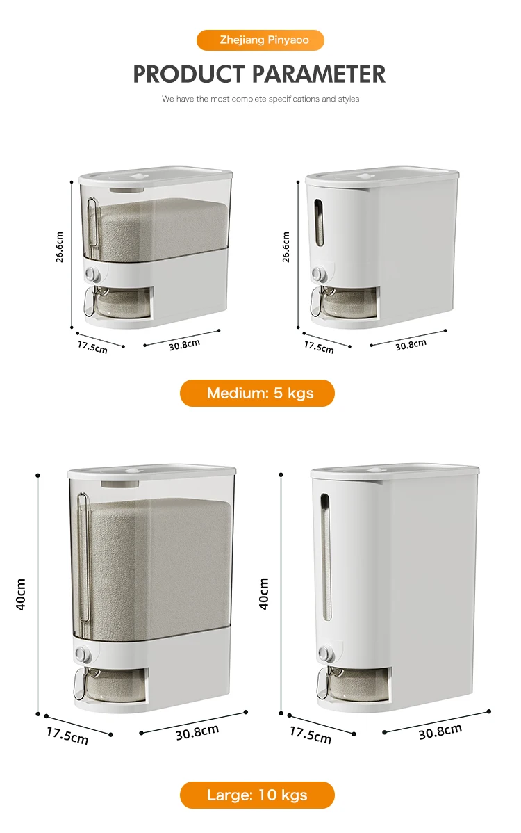 Kitchen plastic PP rice dispenser 5kg bucket storage container sealed lid
