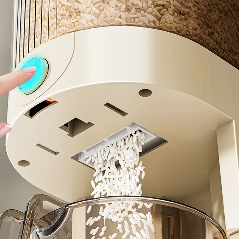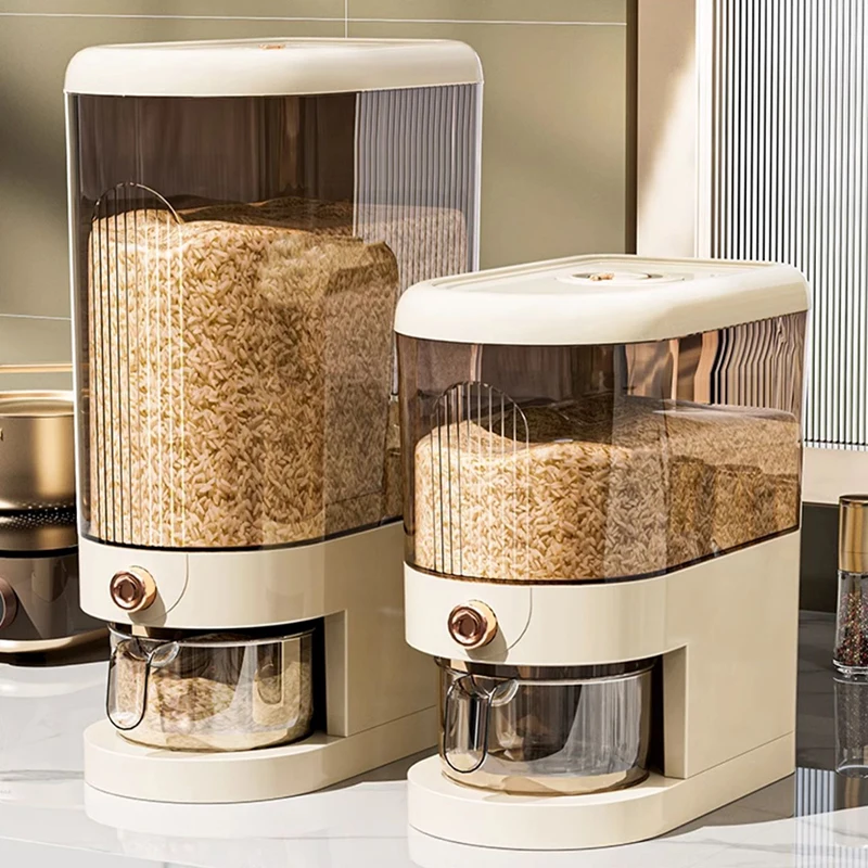 Household plastic rice dispenser 5kg storage container with measuring cup for kitchen