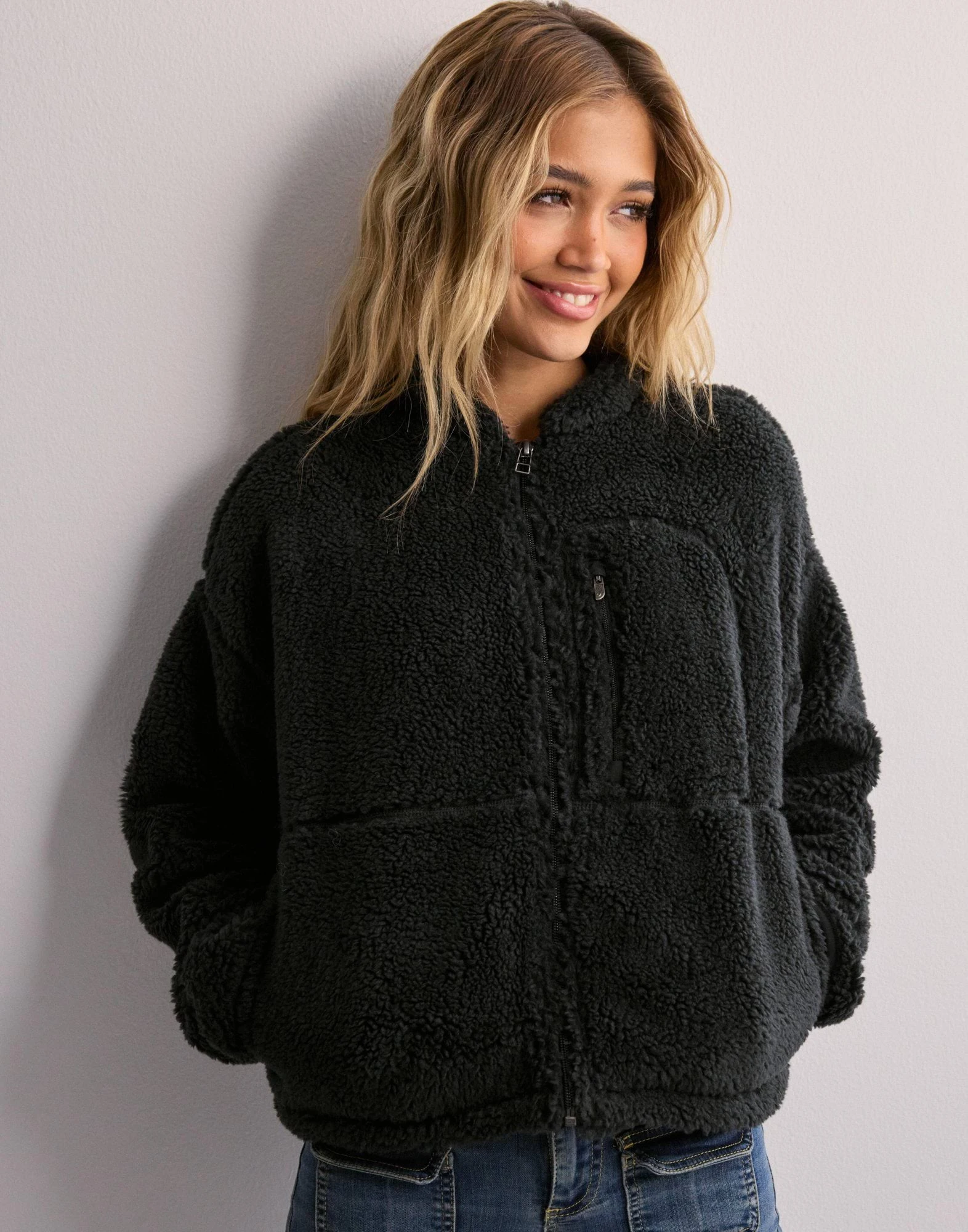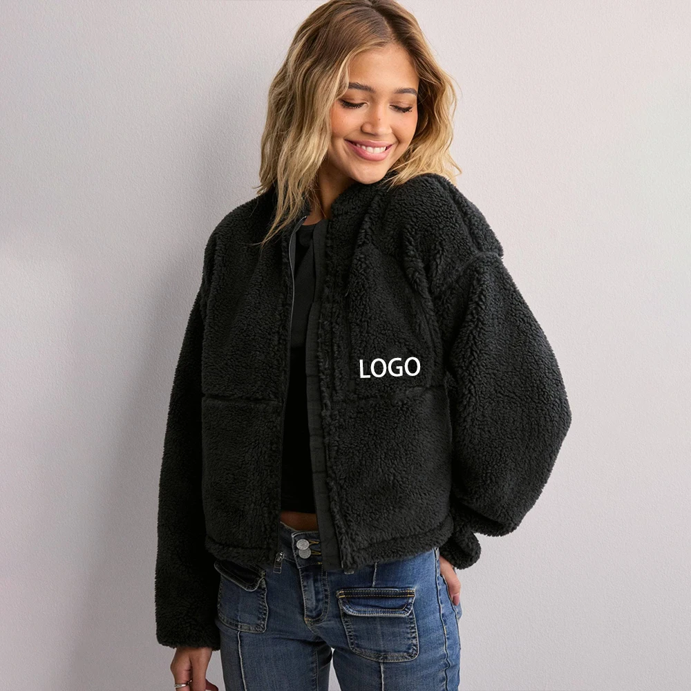 High quality custom logo zip up fleece jacket fuzzy oversized winter clothes for women polar fleece jacket