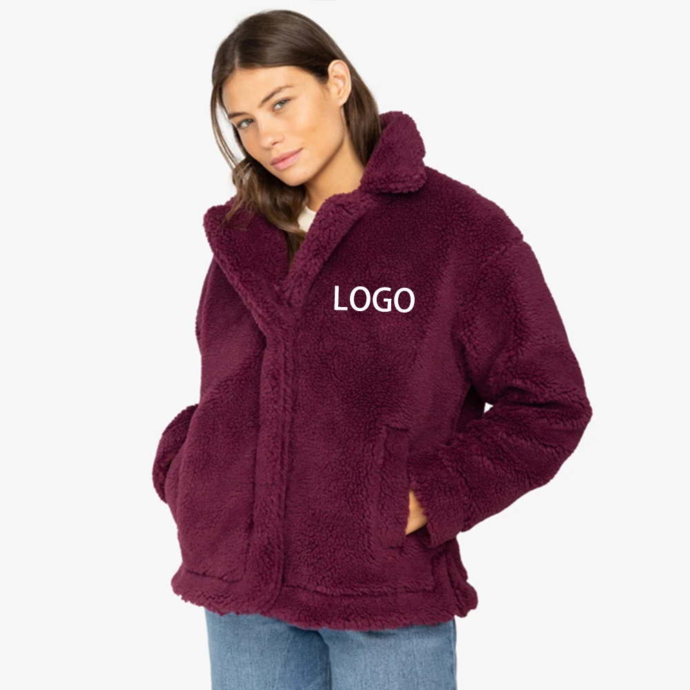 Custom logo pocket fur coat high quality button jacket winter clothes for women fuzzy oversized sherpa fleece jacket