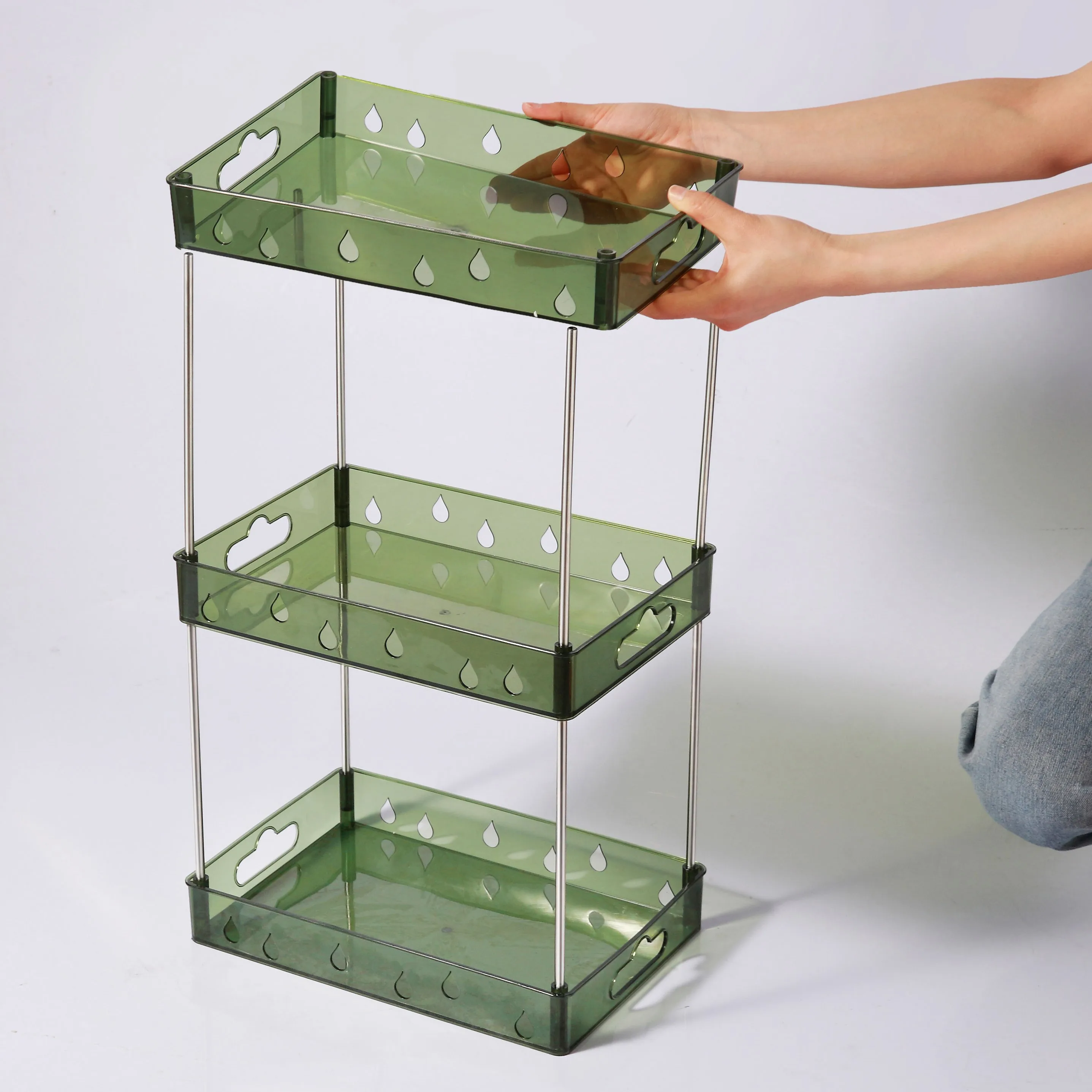 Desktop Transparent Multifunctional Double-layer Narrow Steel Pipe Frame Cosmetics Storage Rack