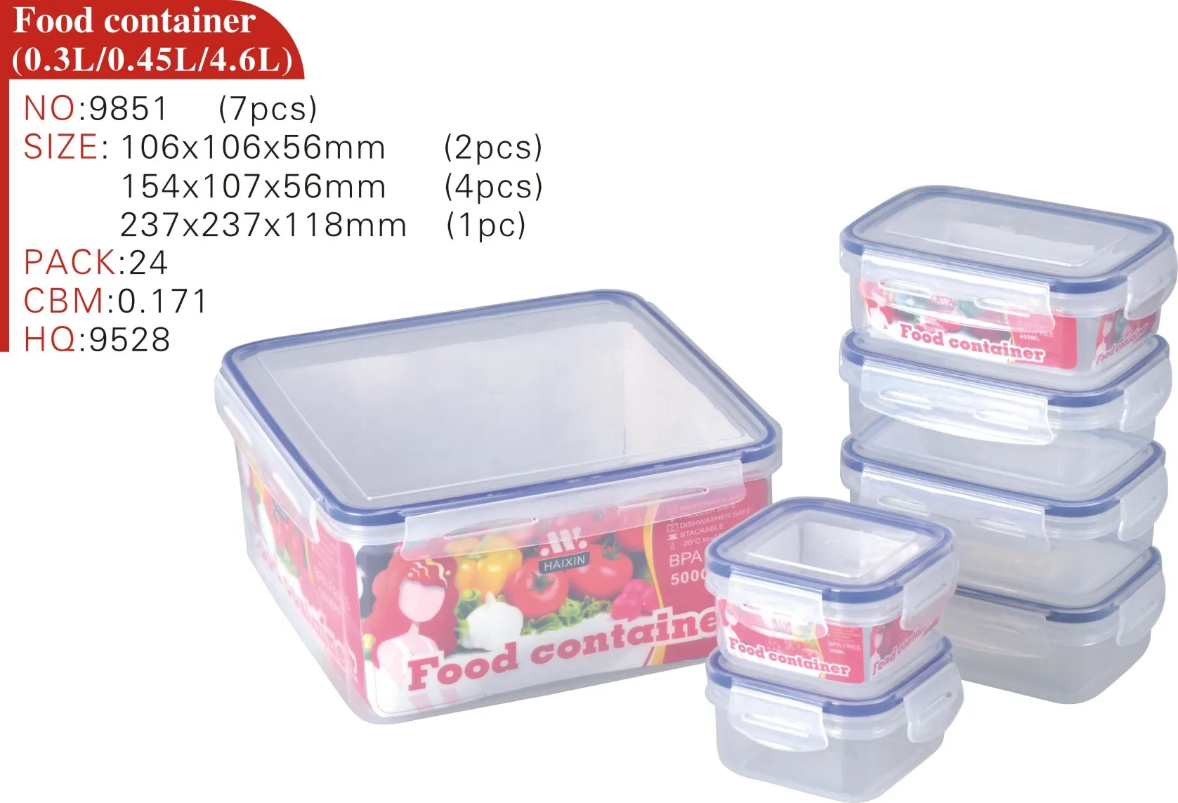 Item | FOOD CONTAINER (7PCS, 0.3L/0.45L/5L) |