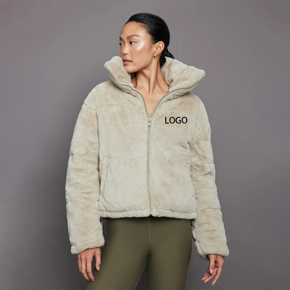 Custom Double Sided Thicken Fabric Reversible Wear Winter Clothes For Women Fur Coat Zip Up Fleece Jacket
