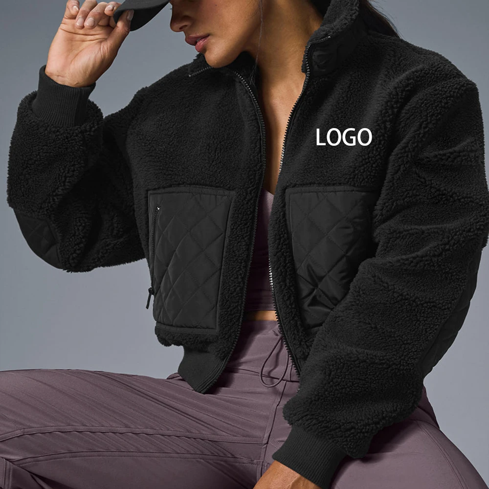 Custom high quality women's jacket winter clothes for women fuzzy teddy zip up sherpa fleece jacket