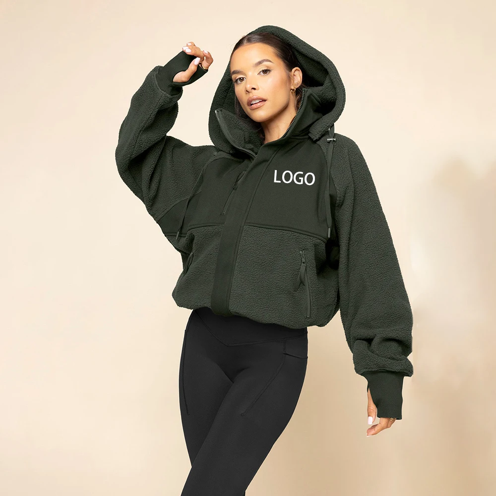 Custom Logo Hoody Women's Jacket Coat Winter Clothes For Women Fur Coat Zip Up Sherpa Fleece Jacket