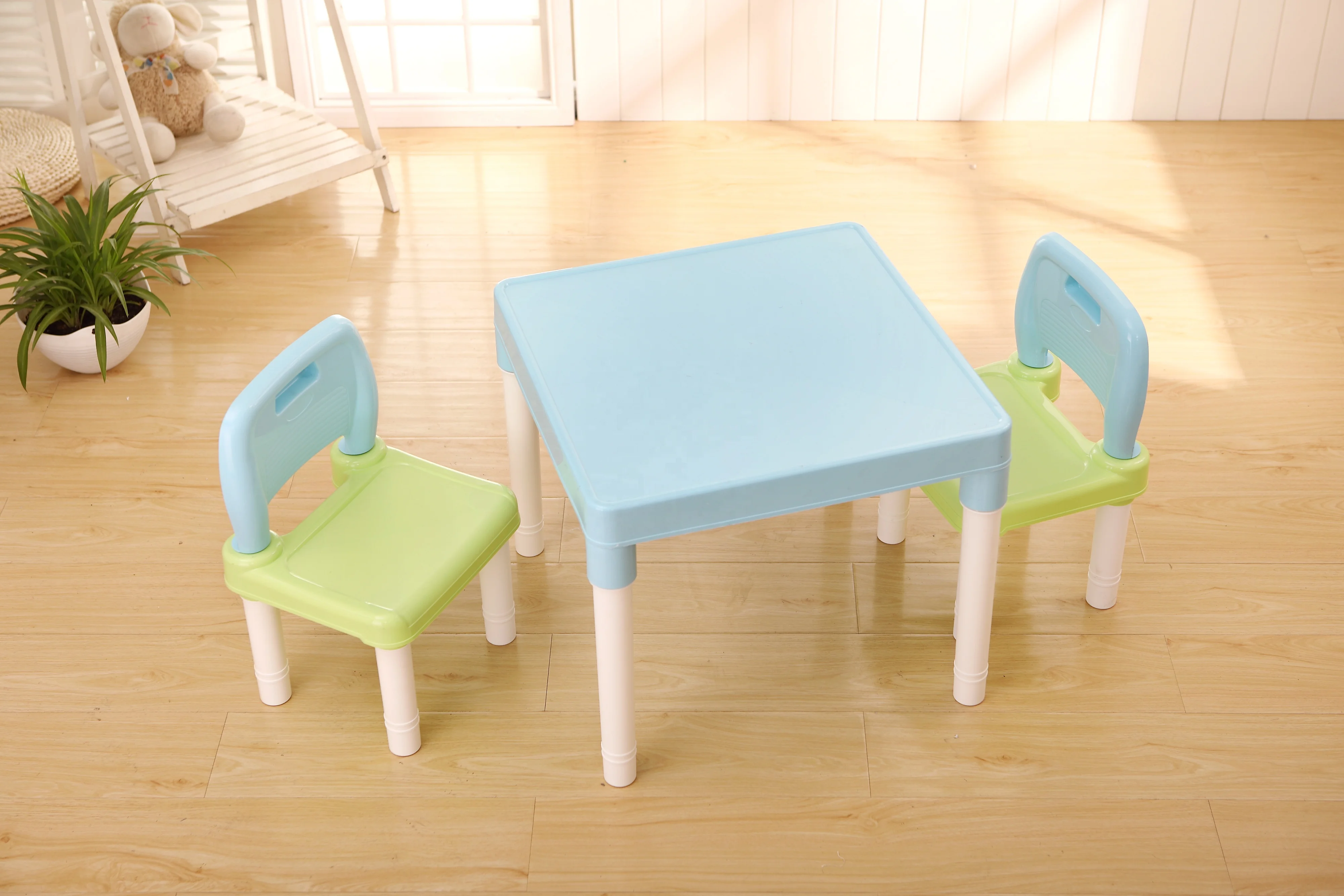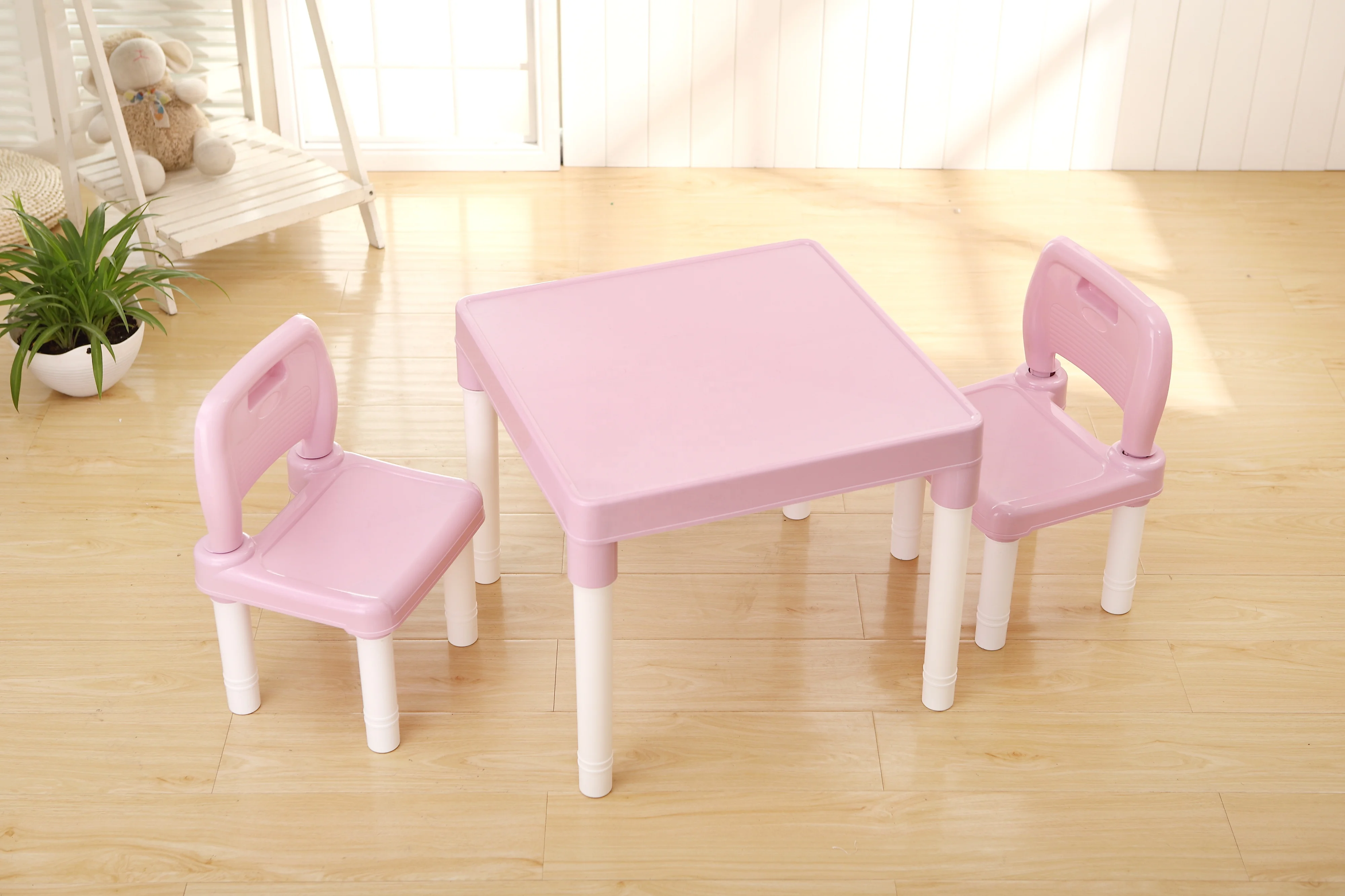 Ø Safe and Secure Material: Made of durable and non-toxic PP material which is secure for your children to use. The waterproof and stain resistant PE material is easy to keep clean. With all corners rounded, the table and chairs set will give smooth surface to avoid any potential clothes or skin scratch.
