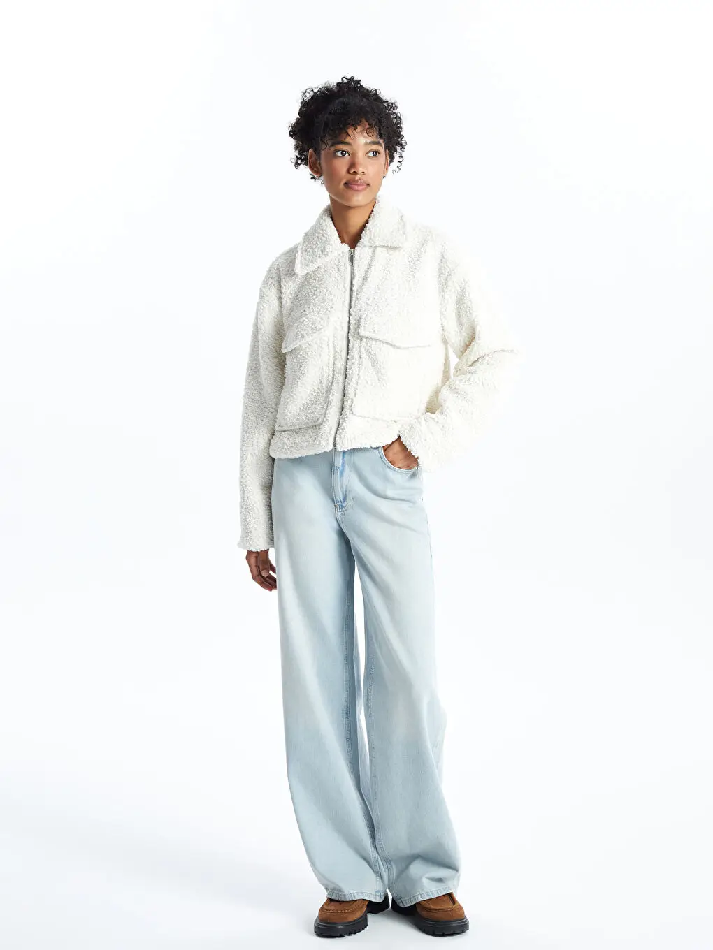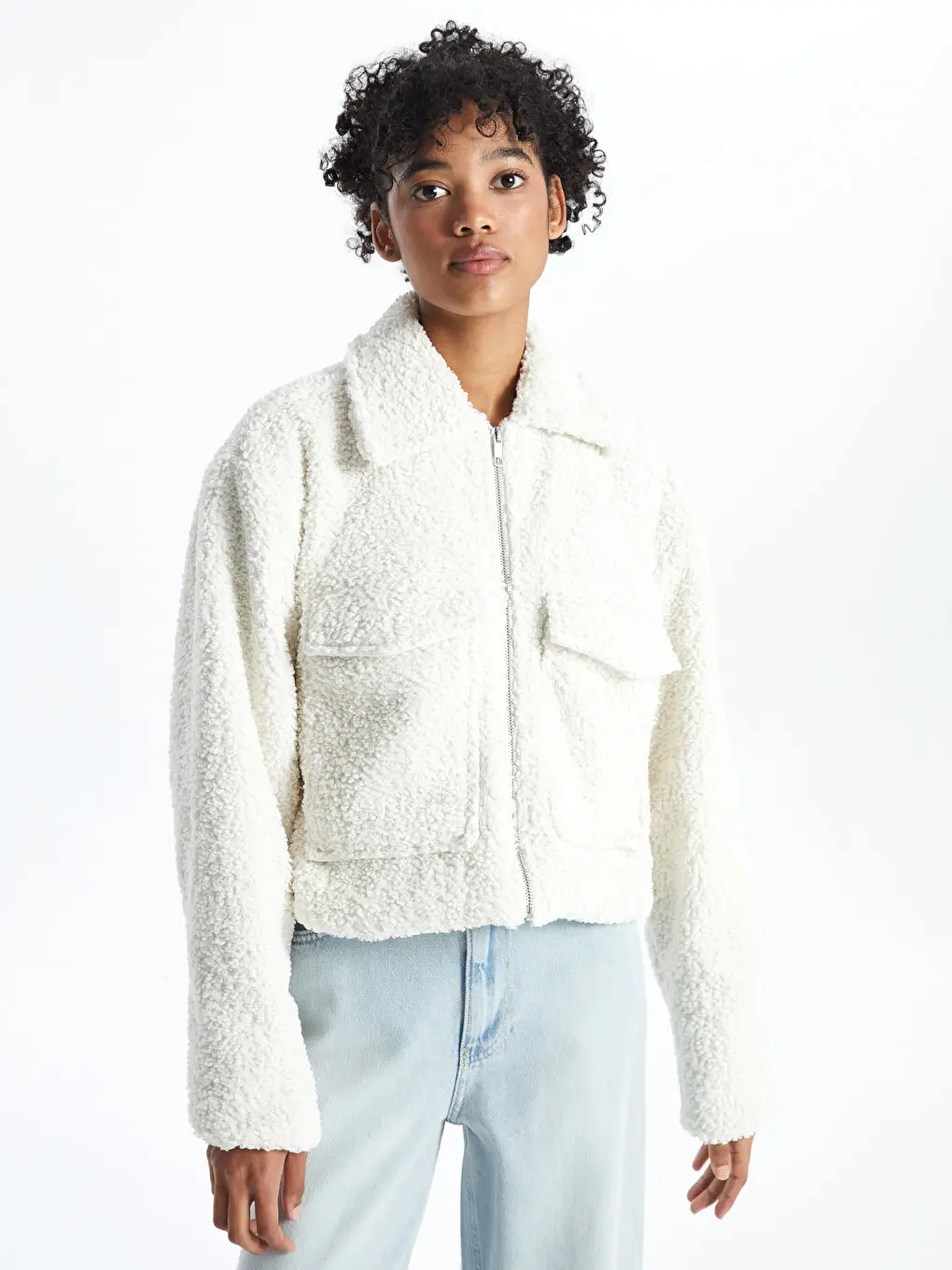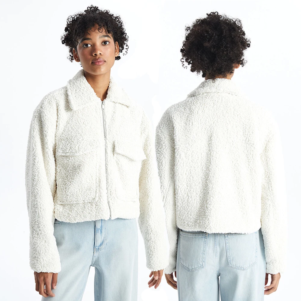 OEM ODM Custom Women's High Collar Plain Teddy Coat Winter Clothes For Women Fur Coat Zip Up Sherpa Fleece Jacket