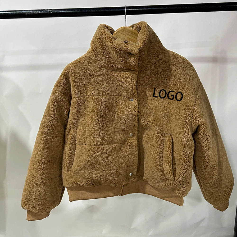 Sherpa Fleece Jacket Custom Embroider Logo Winter Clothes For Women Fur Coat Zip Up Fleece Teddy Jacket