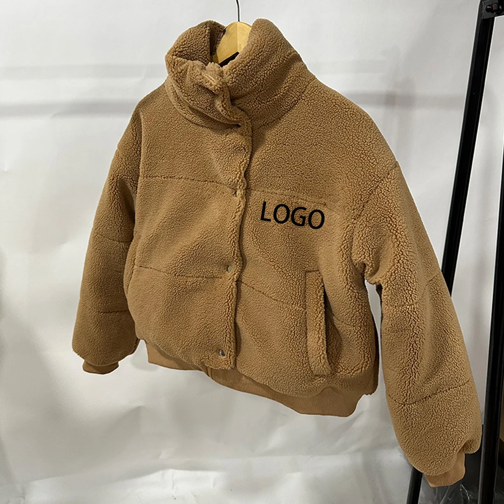 Custom high quality fleece jacket zip up button fur coat thickening with cotton sherpa teddy fleece jacket for women