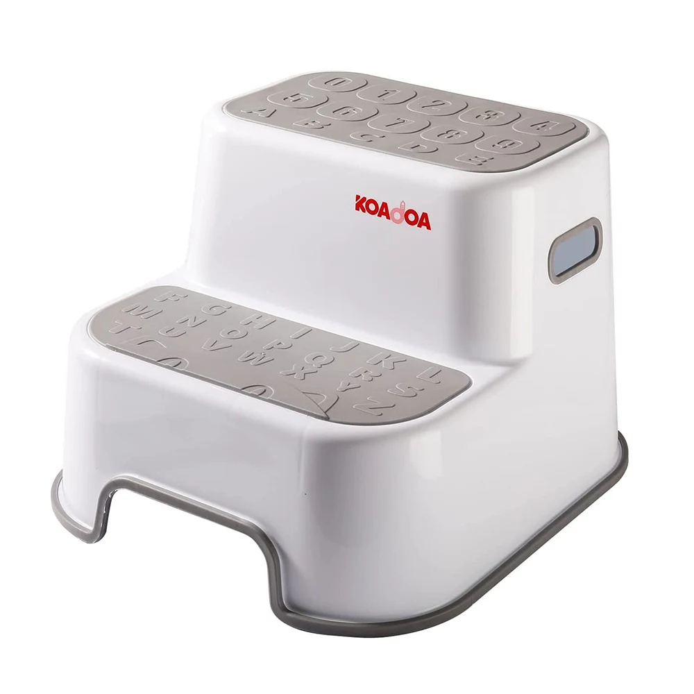 Plastic Bathroom Step Stool for Kids Double Layer Non-slip Surface with Handle White |