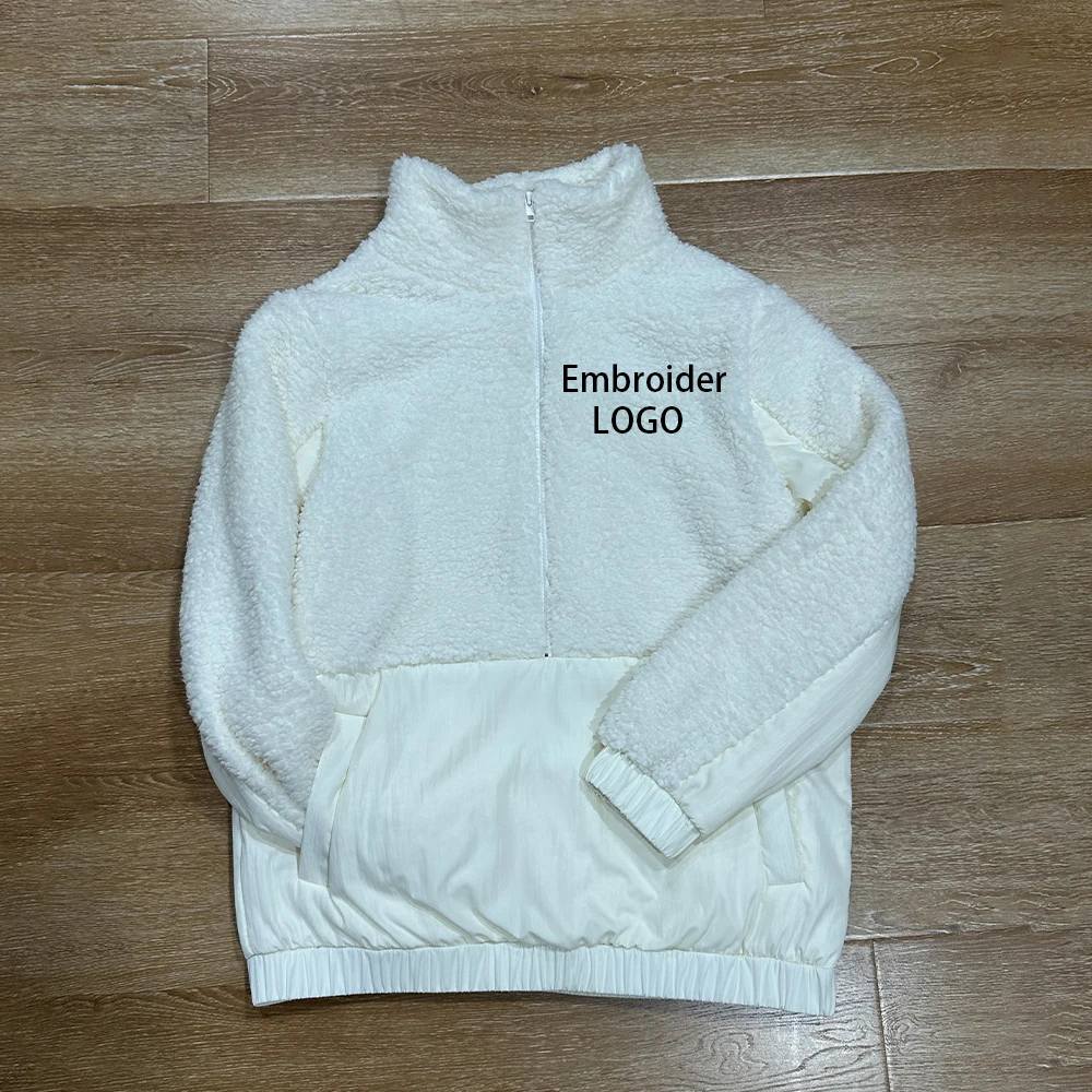 OEM ODM custom logo fleece hoodie high quality women's hoodie fur sherpa fleece half zipper hoodie